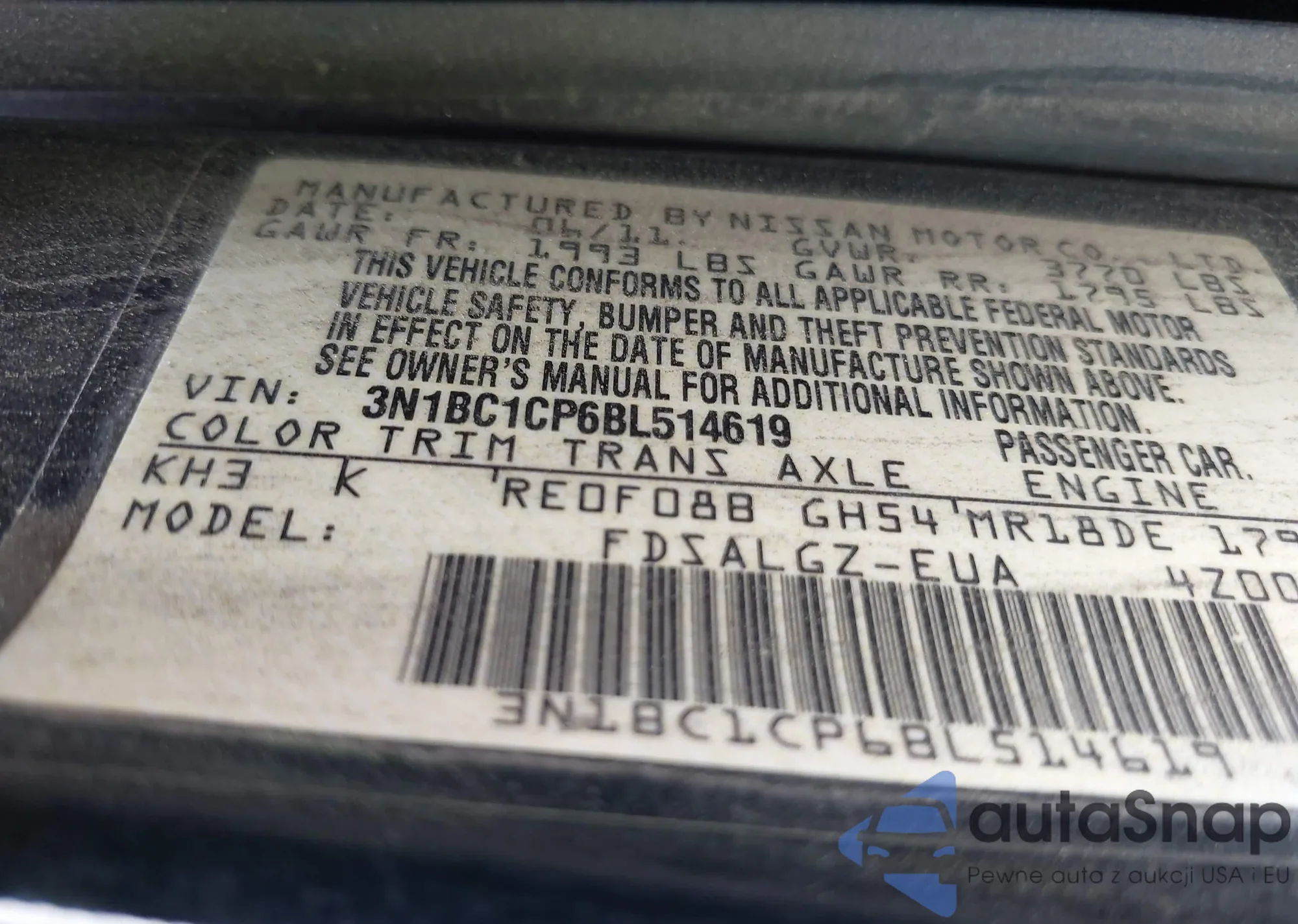 VIN: 3N1BC1CP6BL514619