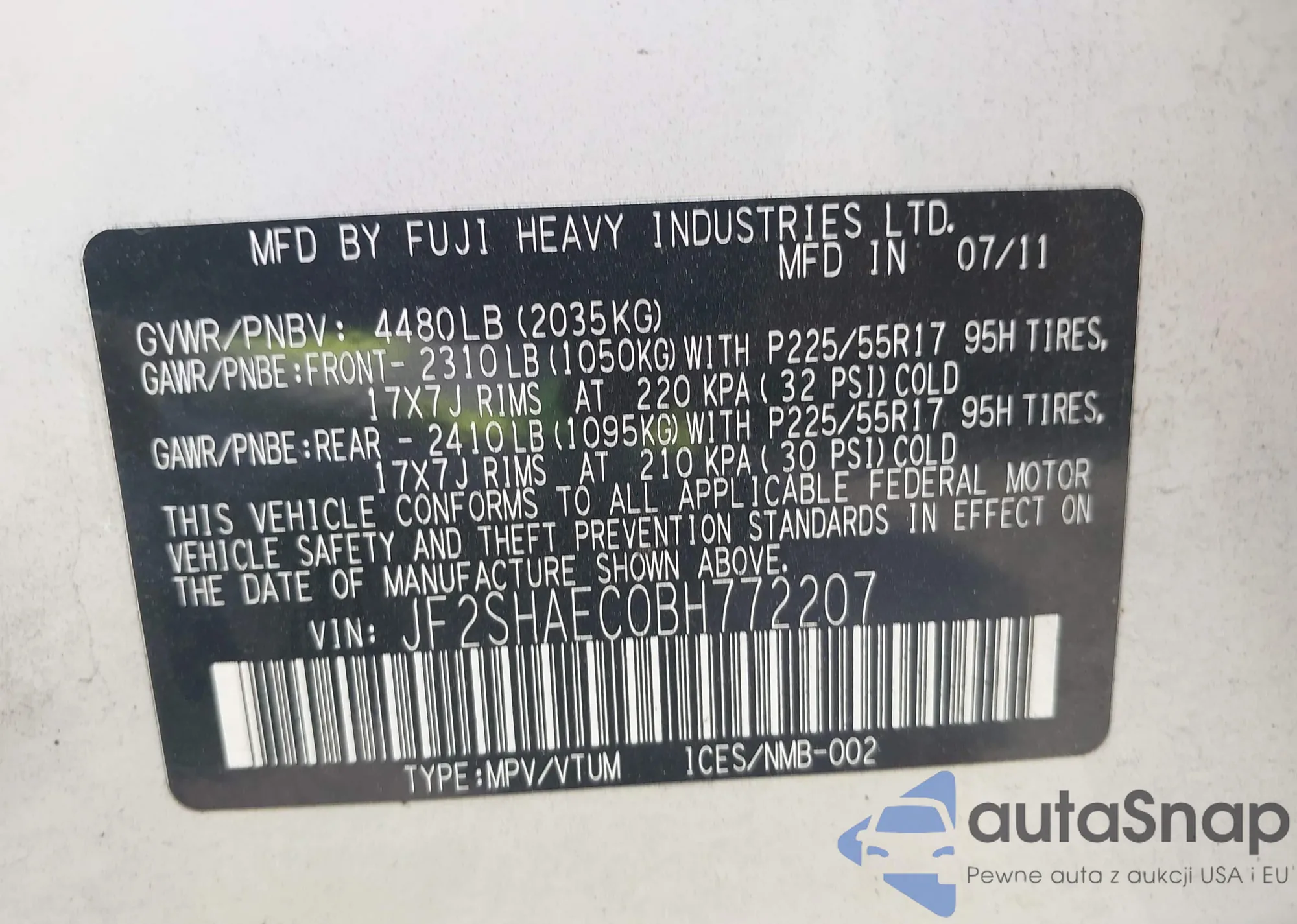 VIN: JF2SHAEC0BH772207