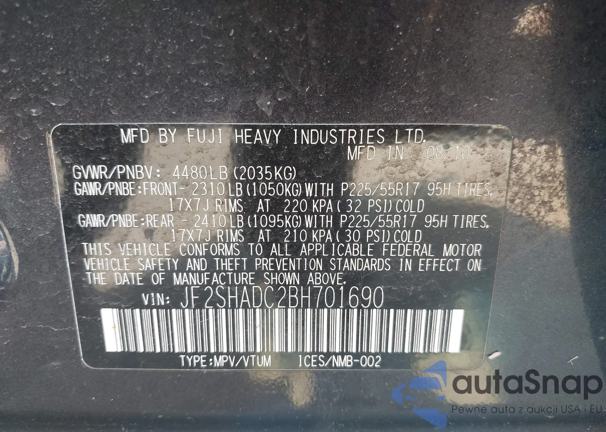 VIN: JF2SHADC2BH701690