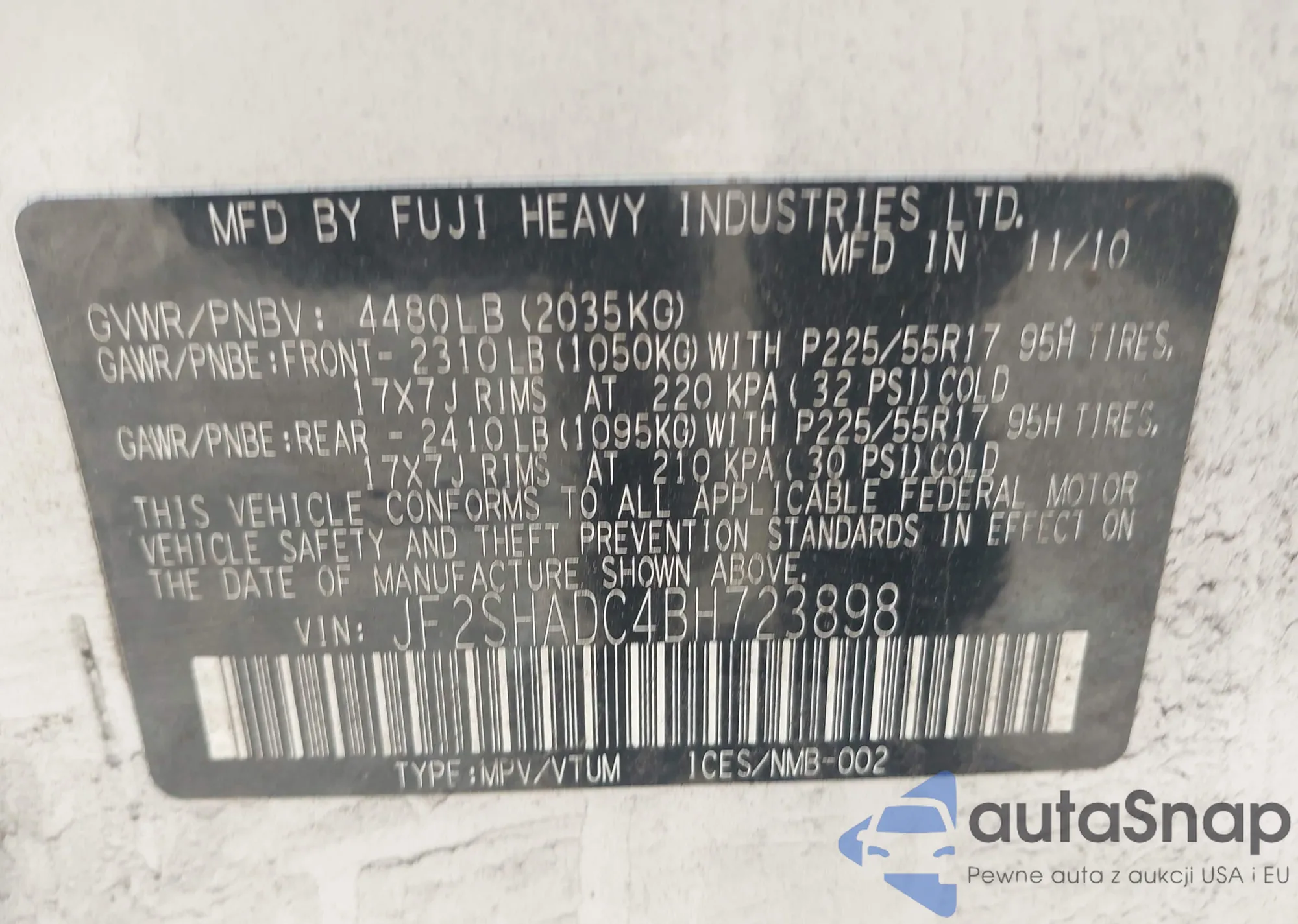 VIN: JF2SHADC4BH723898