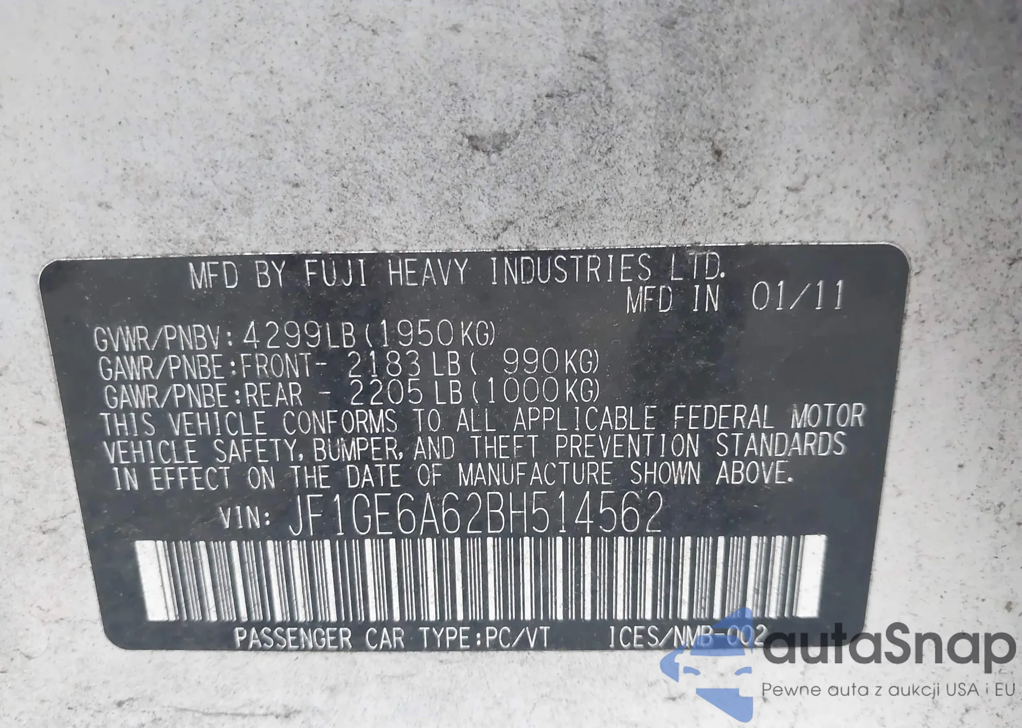 VIN: JF1GE6A62BH514562