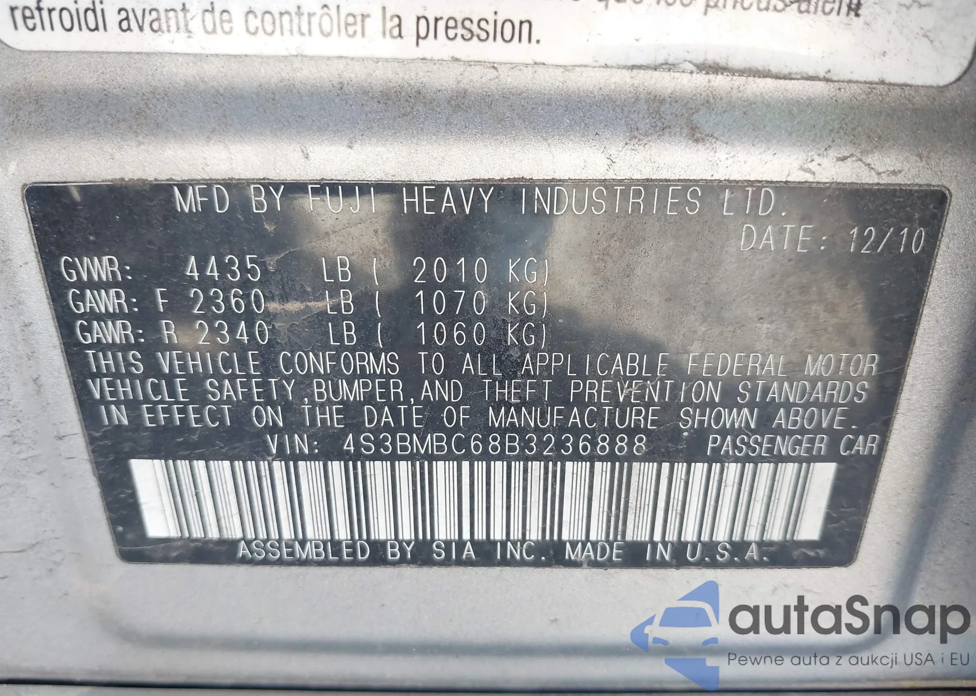 VIN: 4S3BMBC68B3236888