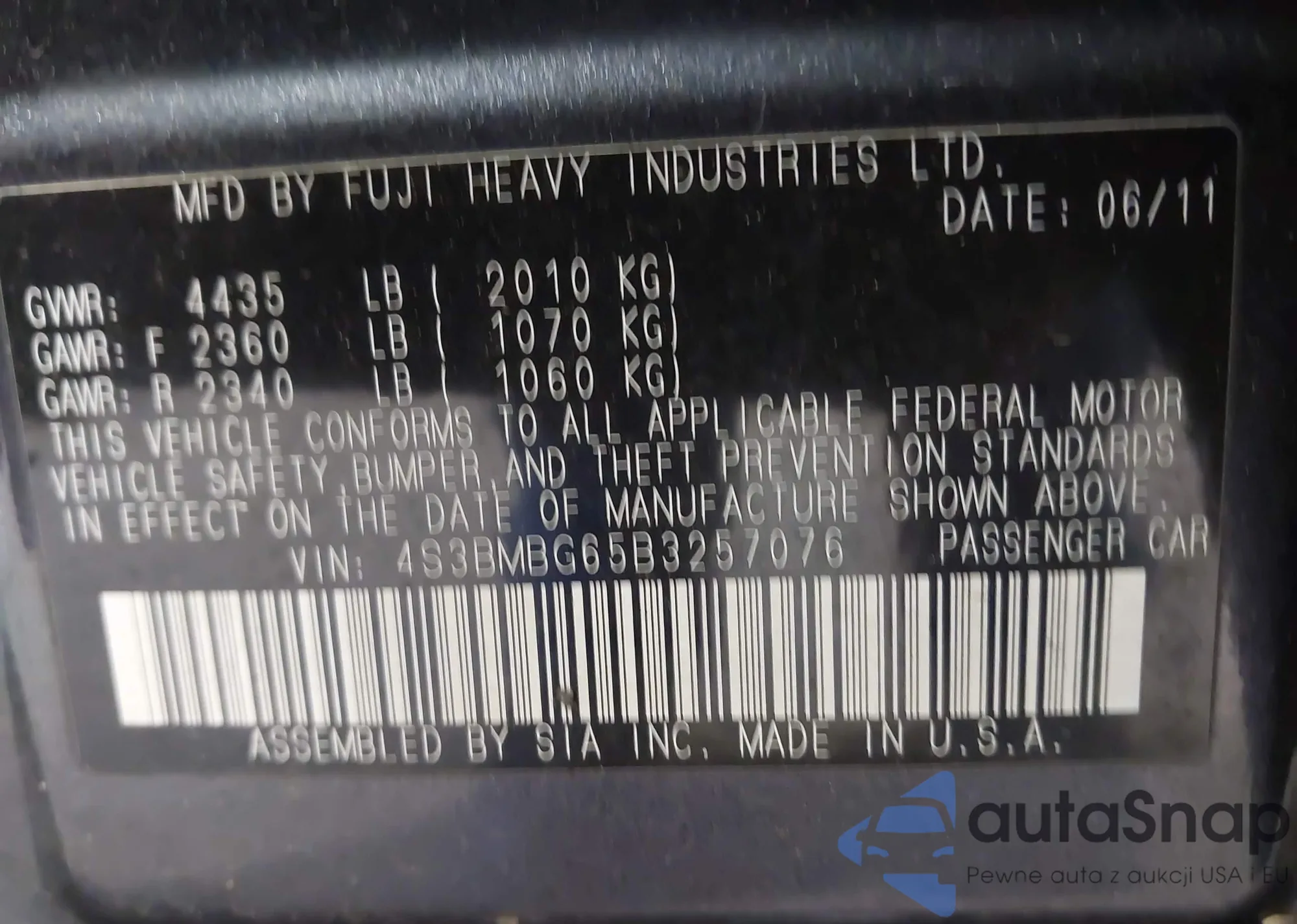 VIN: 4S3BMBG65B3257076