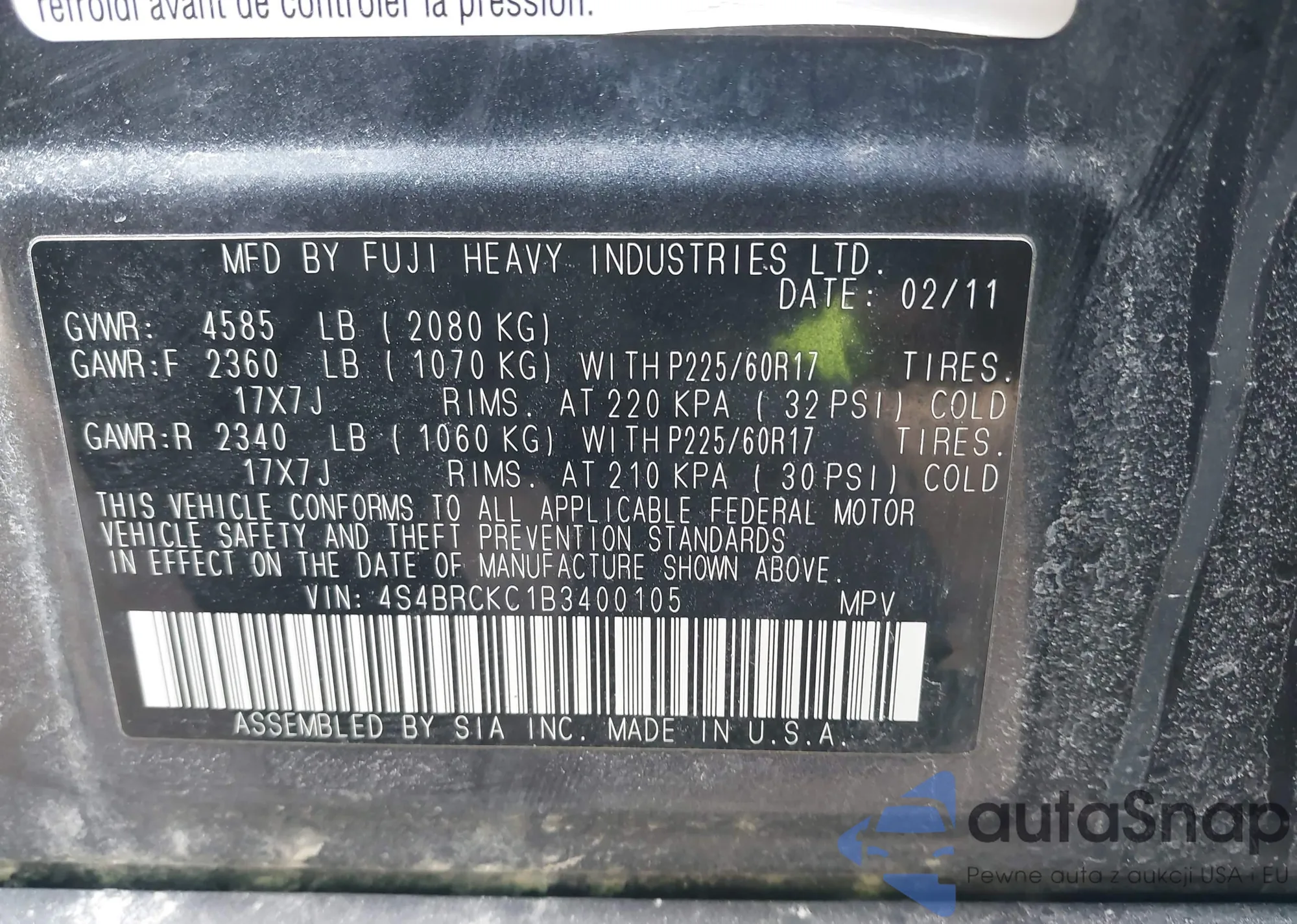 VIN: 4S4BRCKC1B3400105