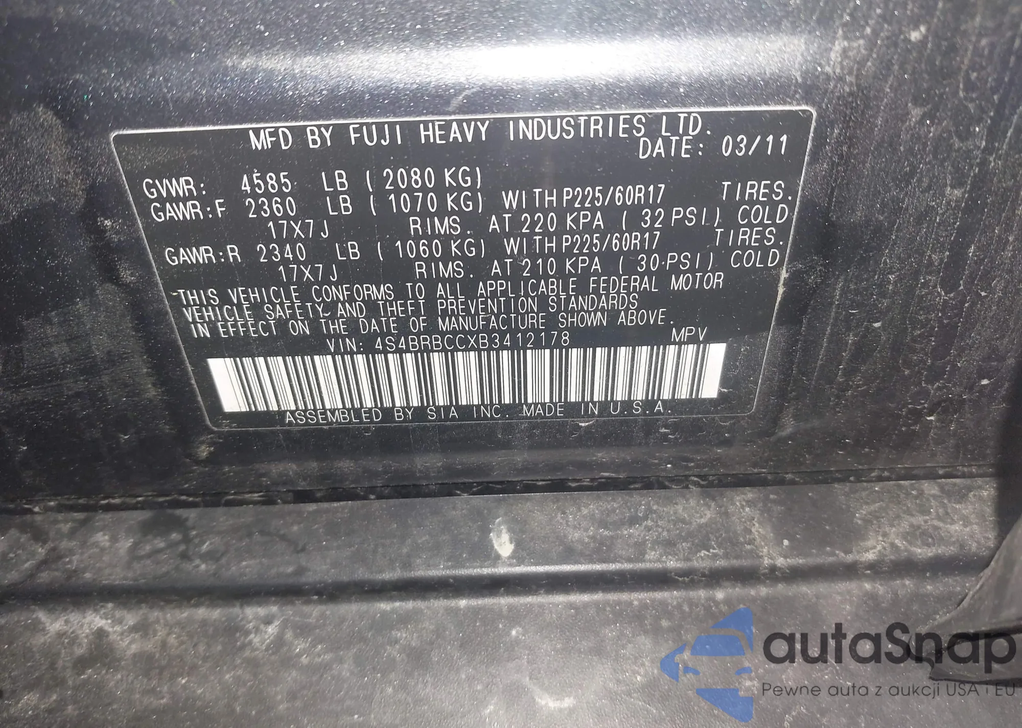 VIN: 4S4BRBCCXB3412178