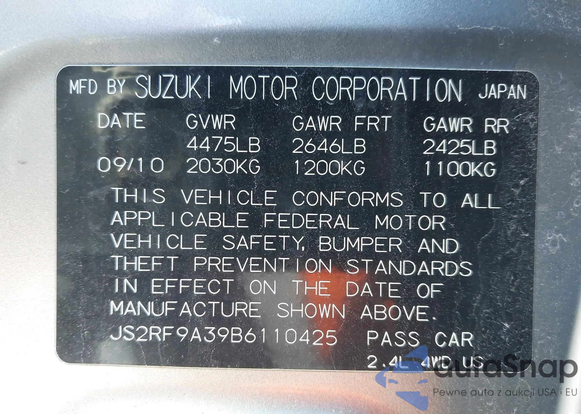 • VIN: JS2RF9A39B6110425
