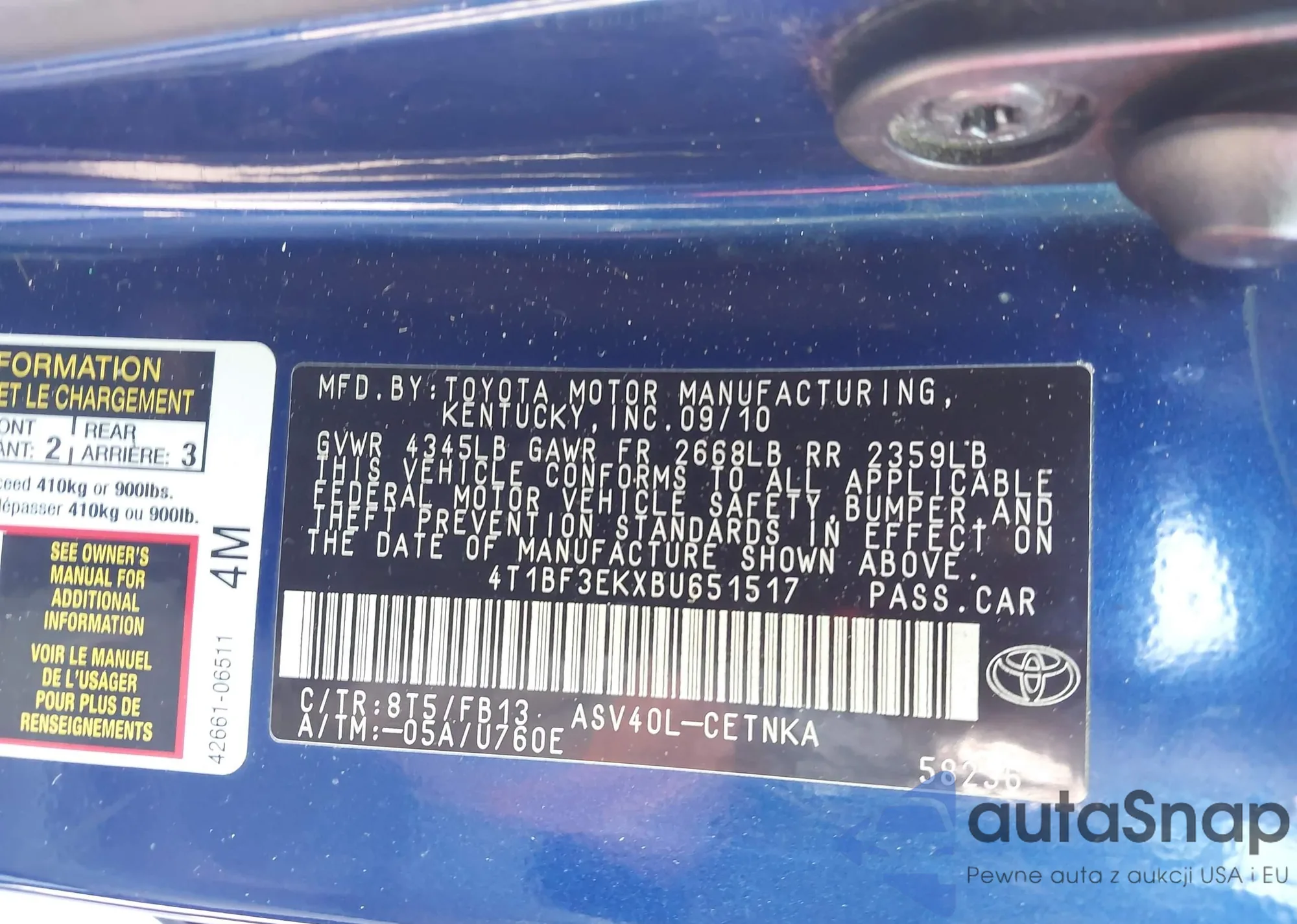 VIN: 4T1BF3EKXBU651517