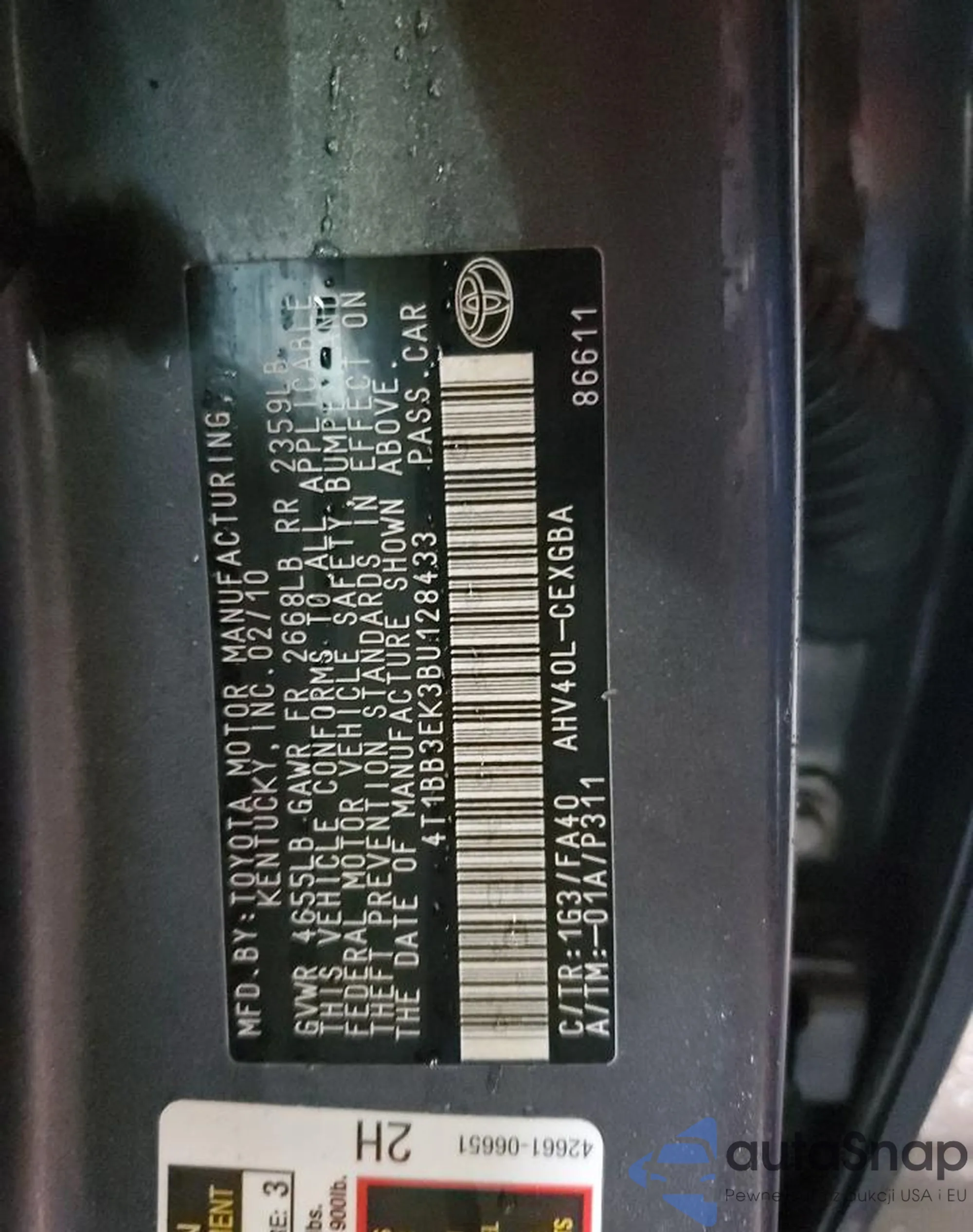 VIN: 4T1BB3EK3BU128433