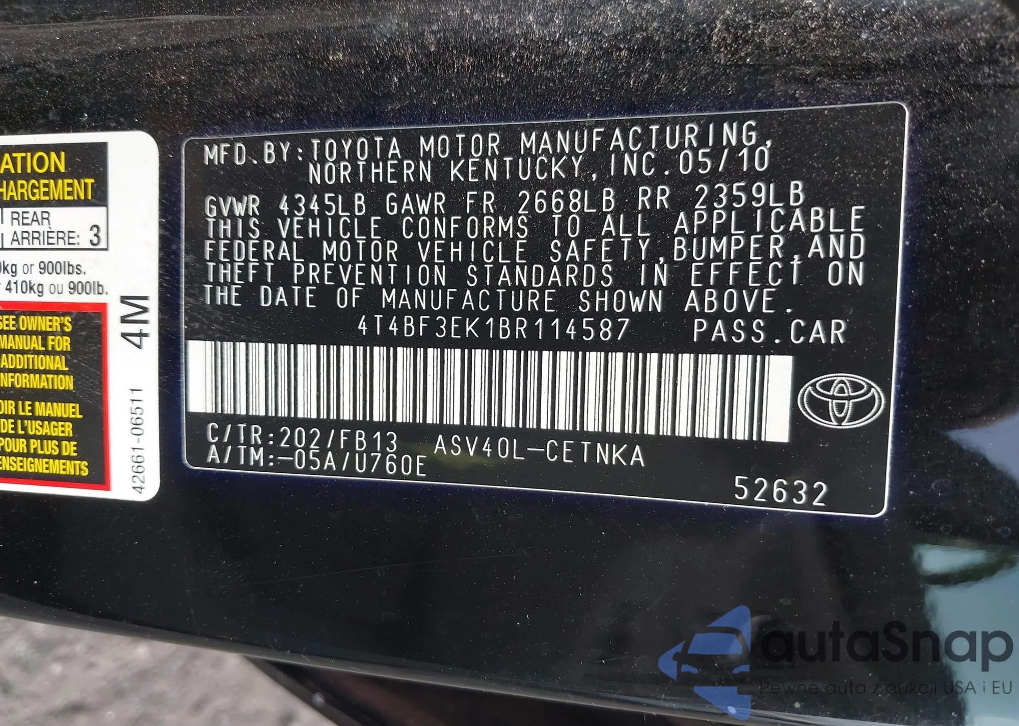 VIN: 4T4BF3EK1BR114587