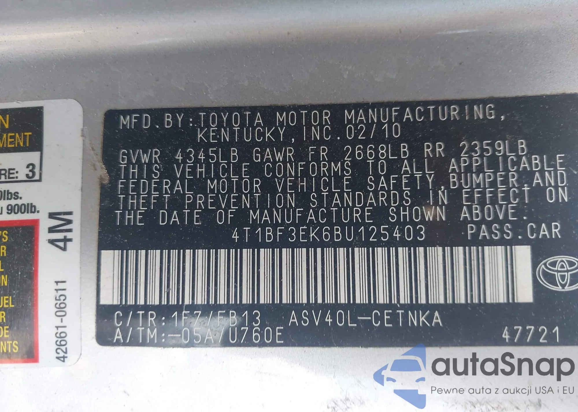 VIN: 4T1BF3EK6BU125403
