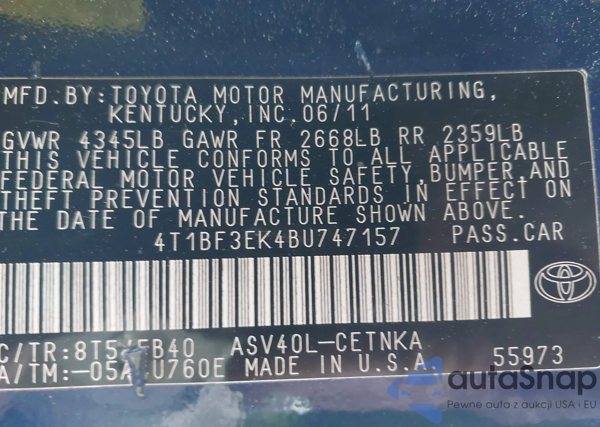 VIN: 4T1BF3EK4BU747157