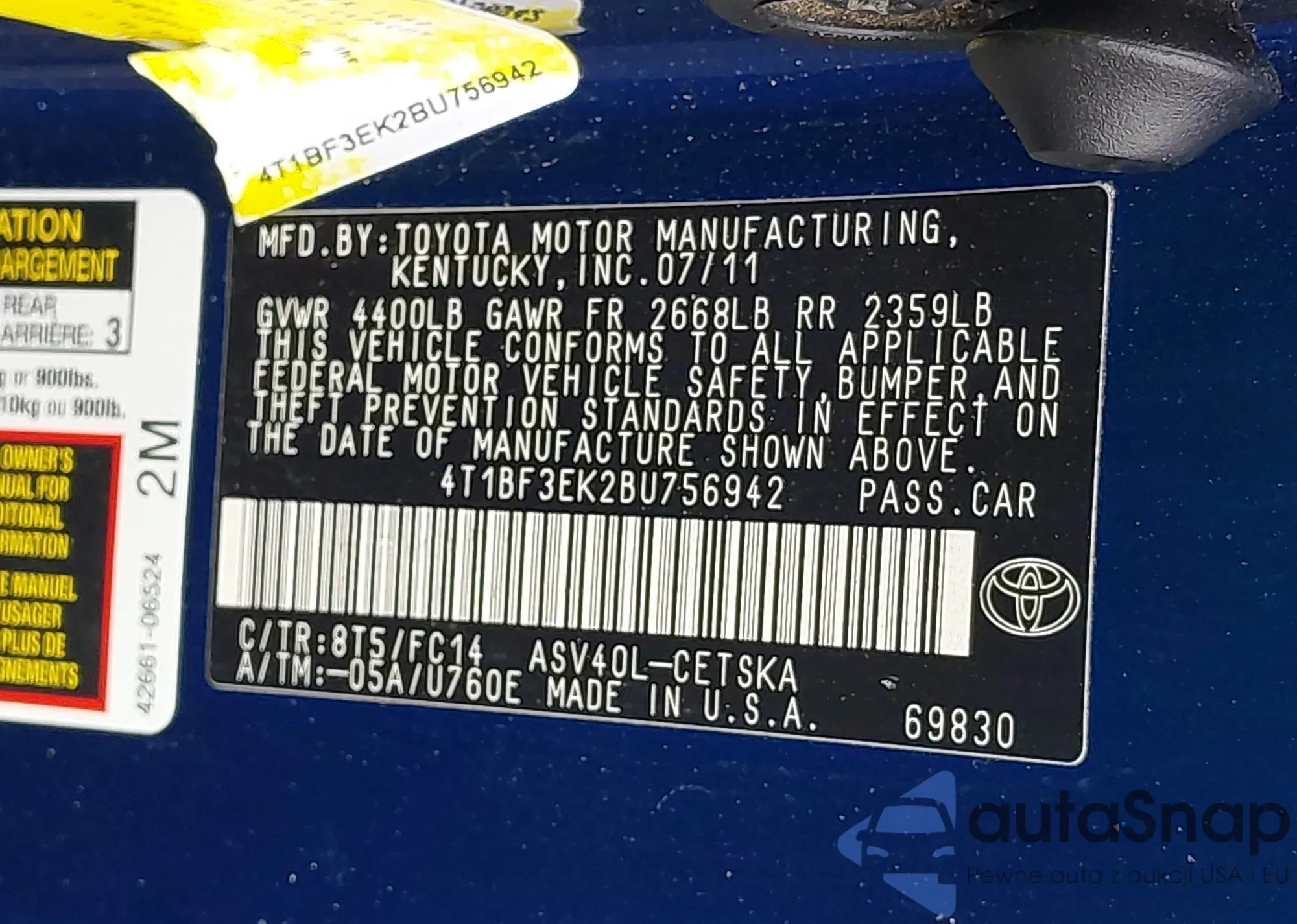 VIN: 4T1BF3EK2BU756942