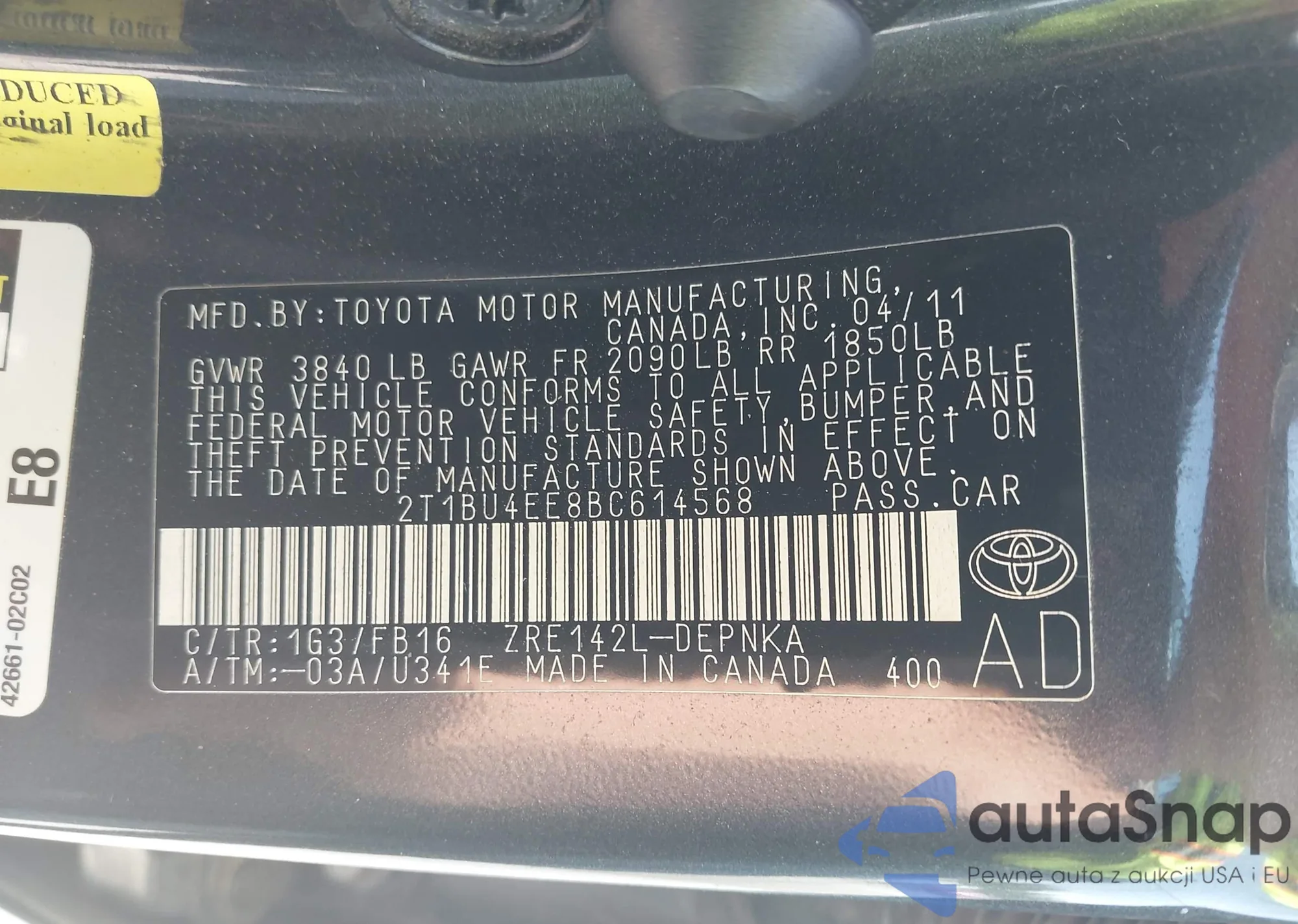 VIN: 2T1BU4EE8BC614568