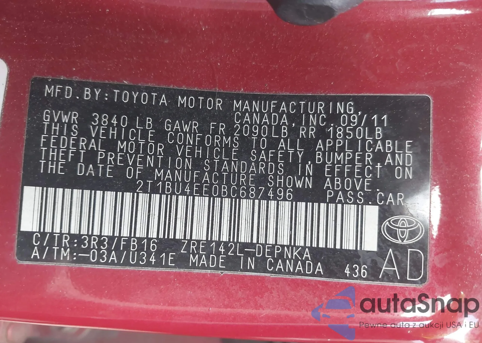 VIN: 2T1BU4EE0BC687496