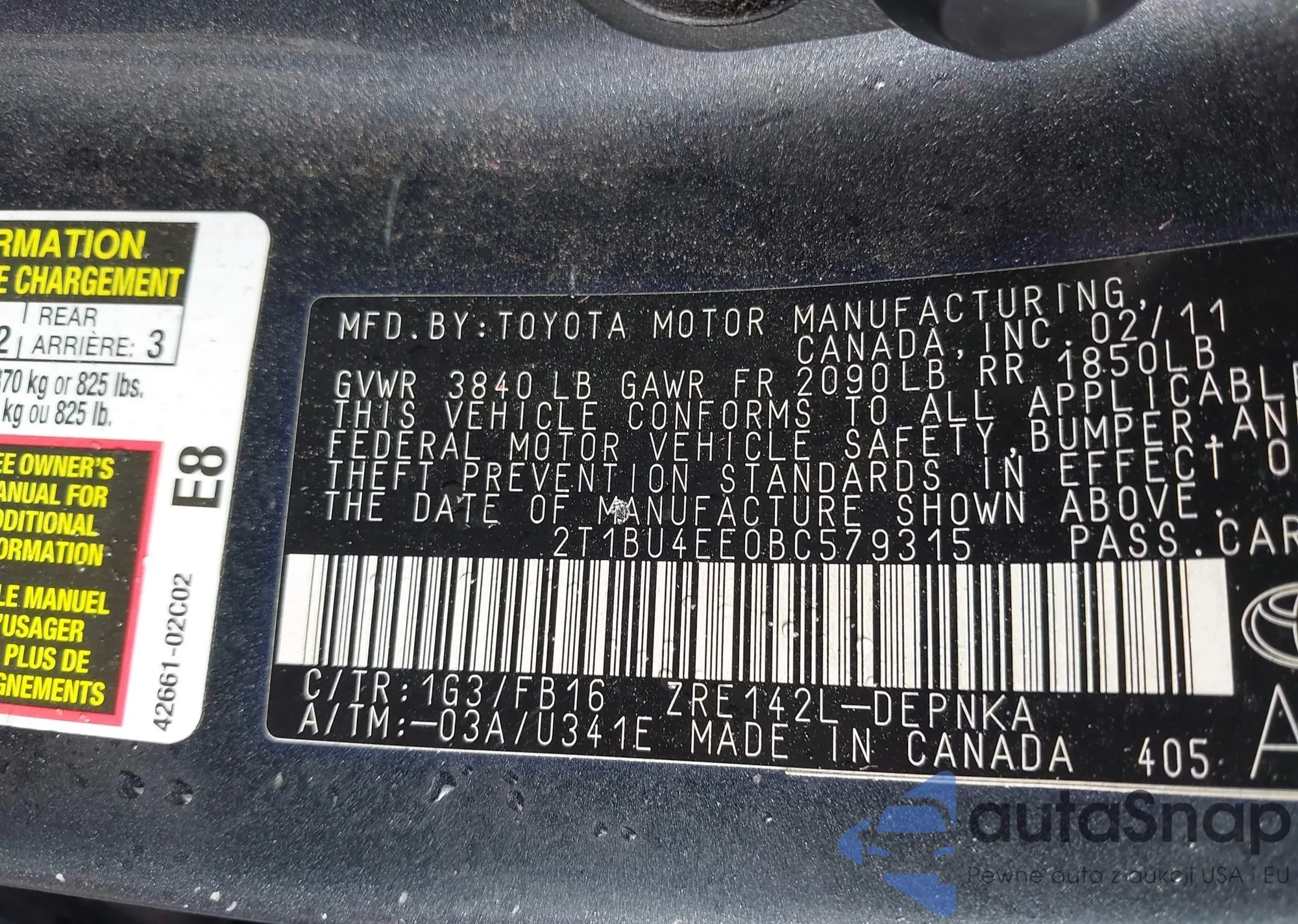 VIN: 2T1BU4EE0BC579315