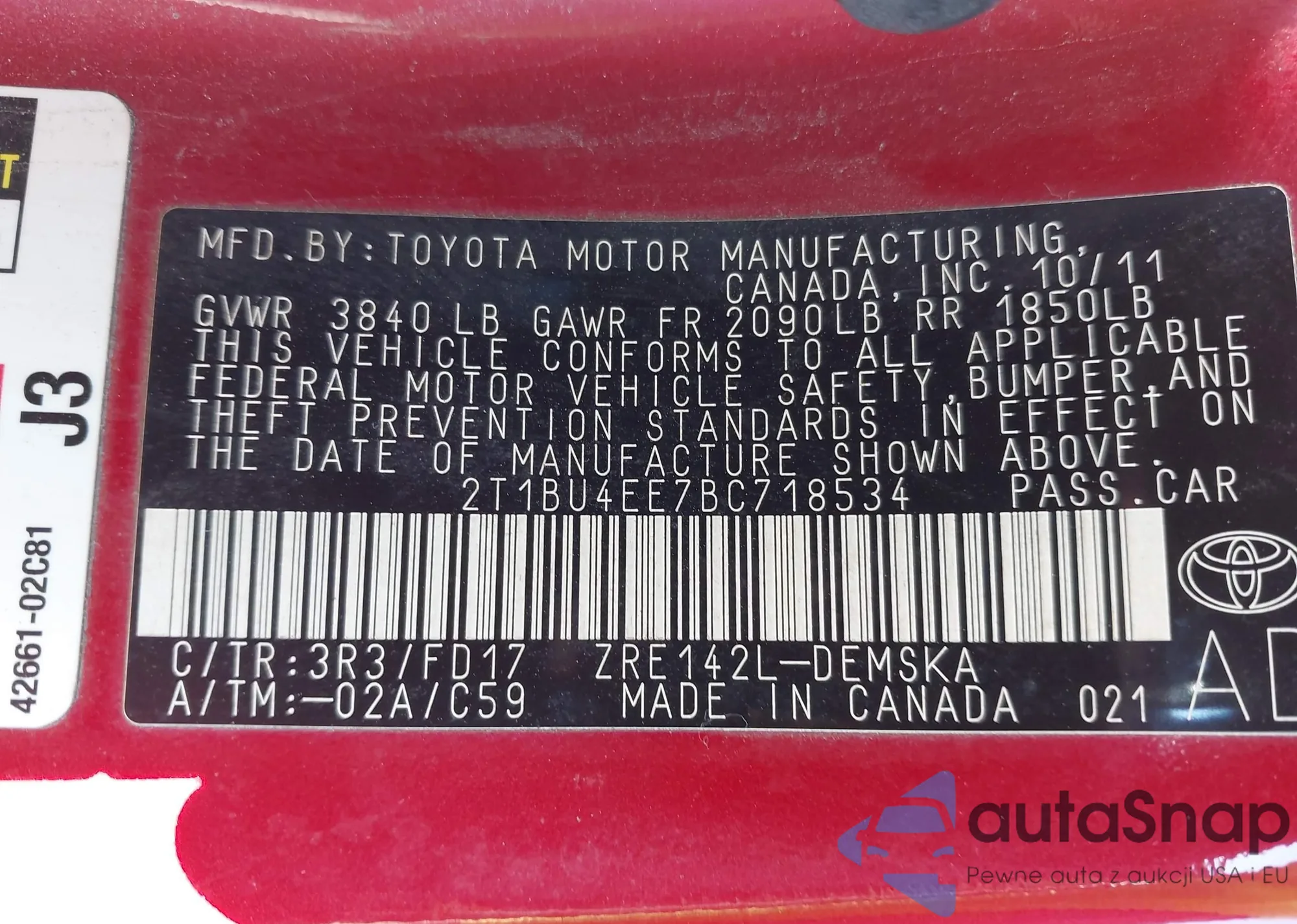 VIN: 2T1BU4EE7BC718534