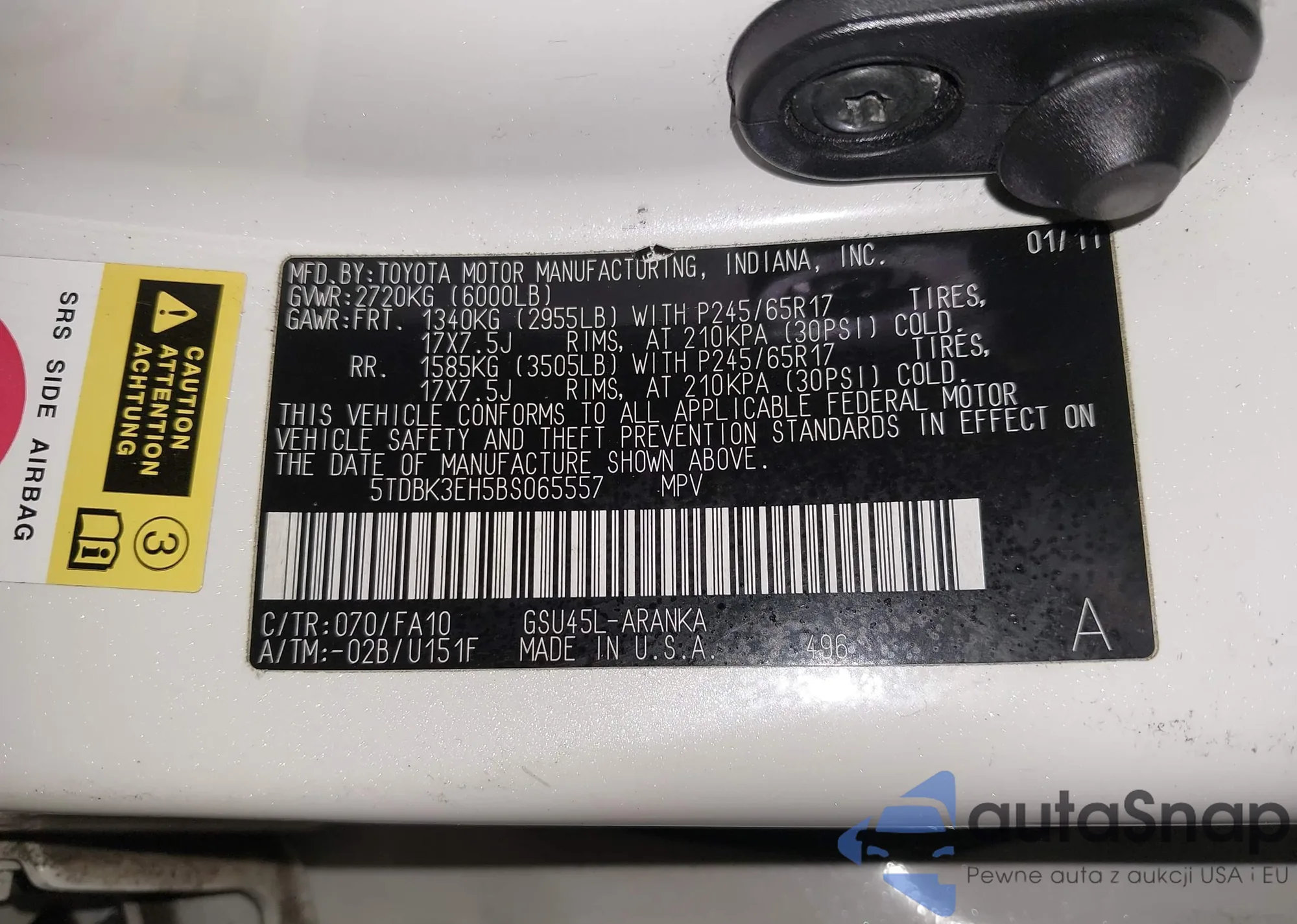 Автомобиль Toyota Highlander 2011 (VIN 5TDBK3EH5BS065557) ранее не участвовал в торгах. Документы чистые, пробег соответствует или ниже среднего по рынку. Продаётся страховой компанией — рекомендуем покупку. Доставка в порт займет около 6–8 недель.