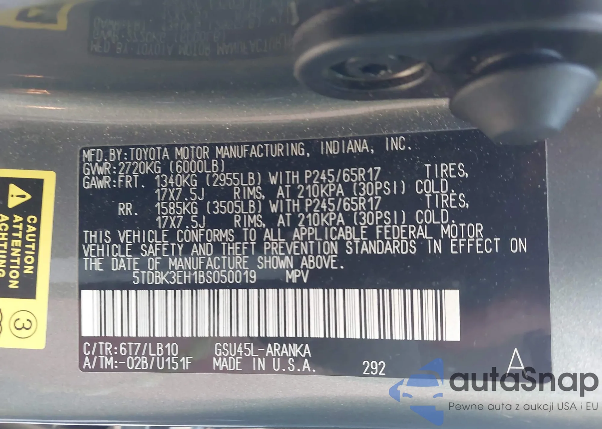 VIN: 5TDBK3EH1BS050019