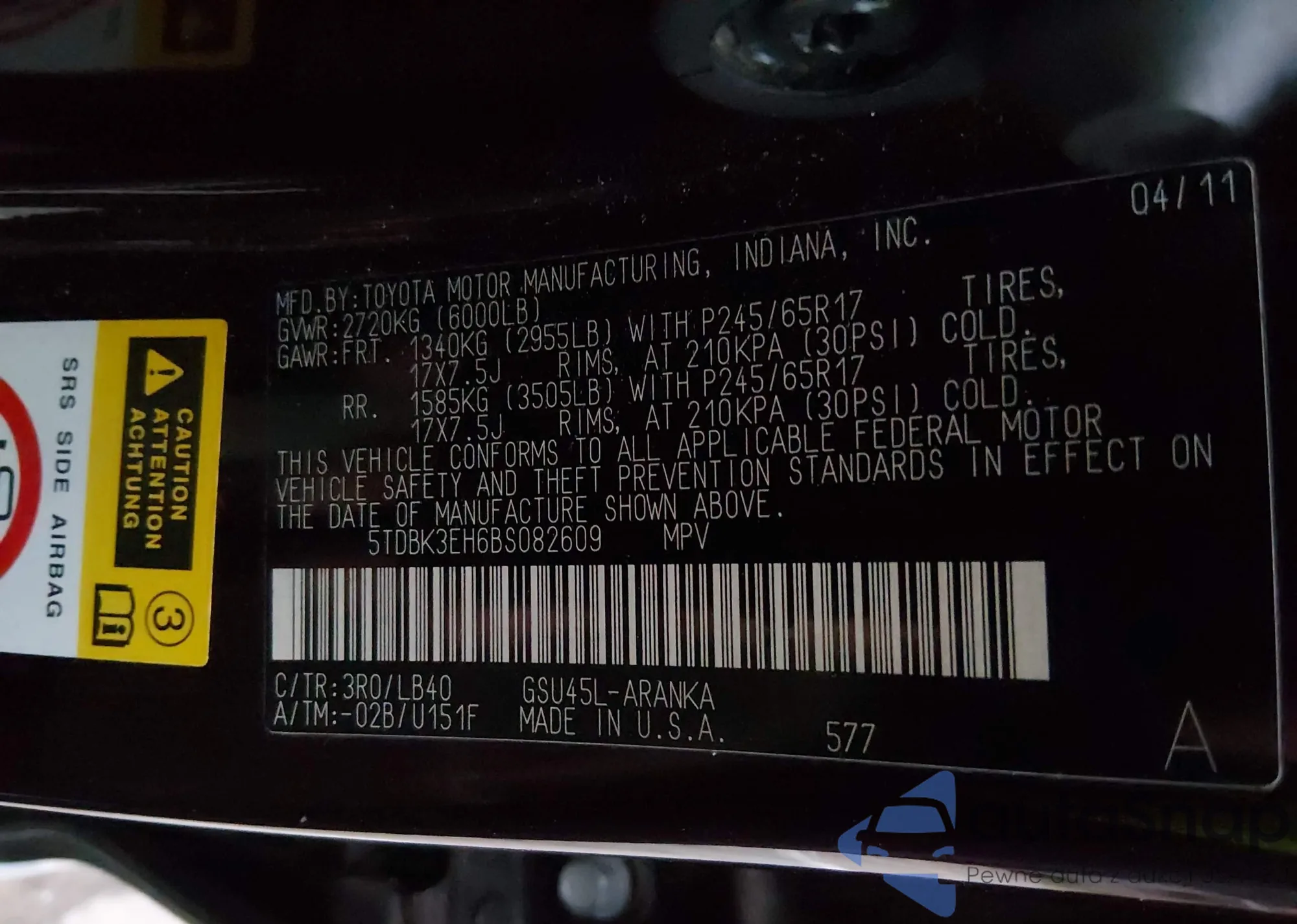 VIN: 5TDBK3EH6BS082609