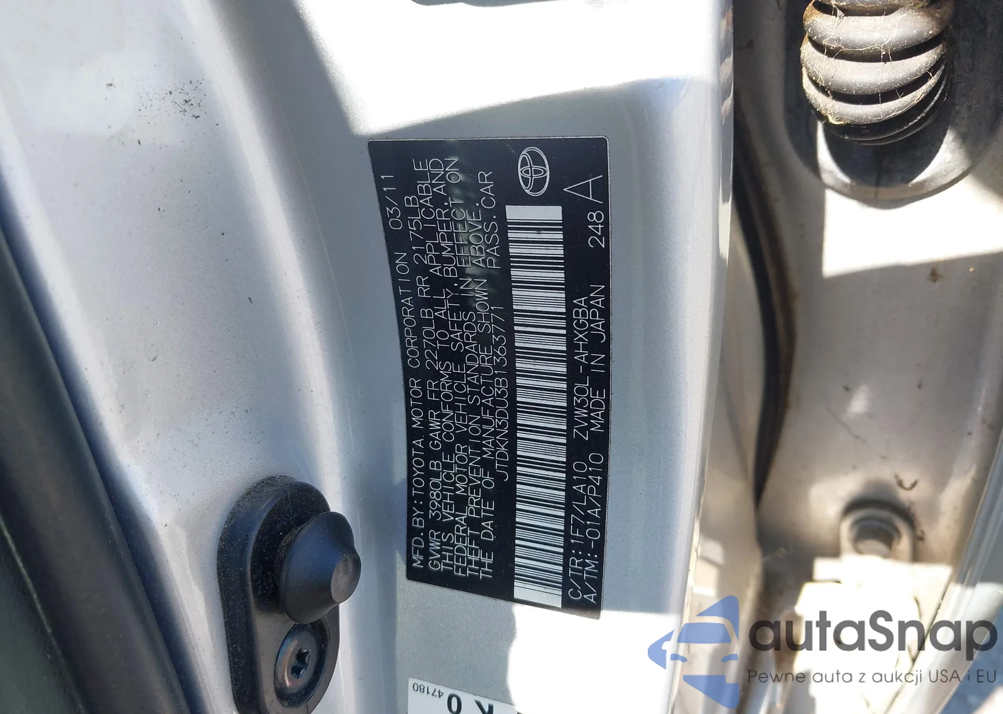 VIN: JTDKN3DU3B1363771