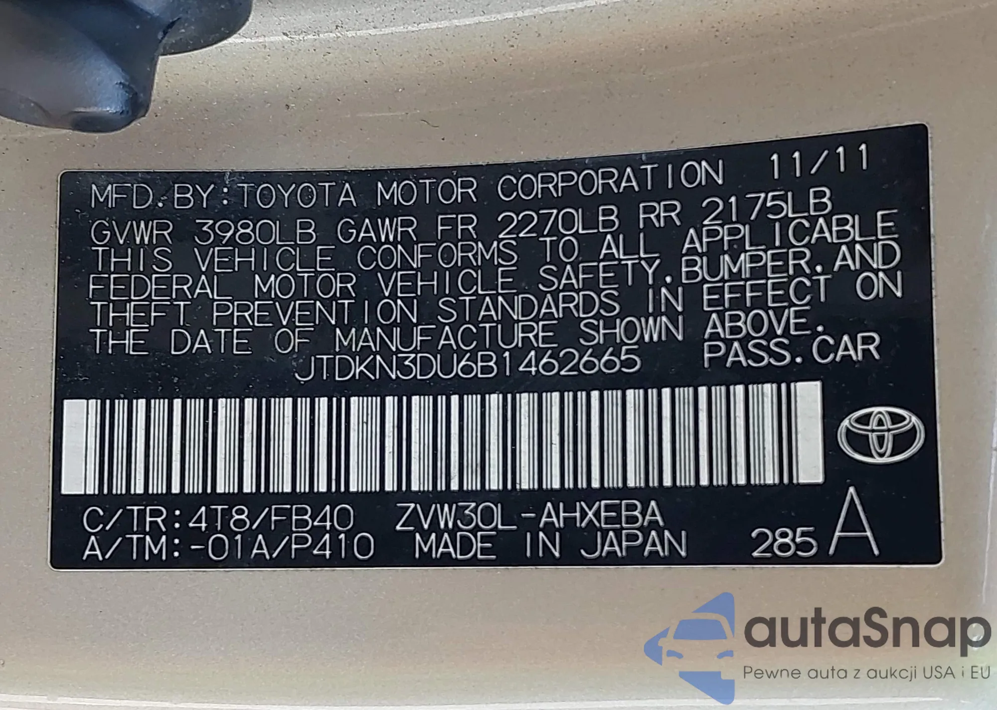 Автомобиль Toyota Prius 2011 (VIN JTDKN3DU6B1462665) ранее не участвовал в торгах. Документы чистые, пробег соответствует или ниже среднего по рынку. Продаётся страховой компанией — рекомендуем покупку. Доставка в порт займет около 6–8 недель.