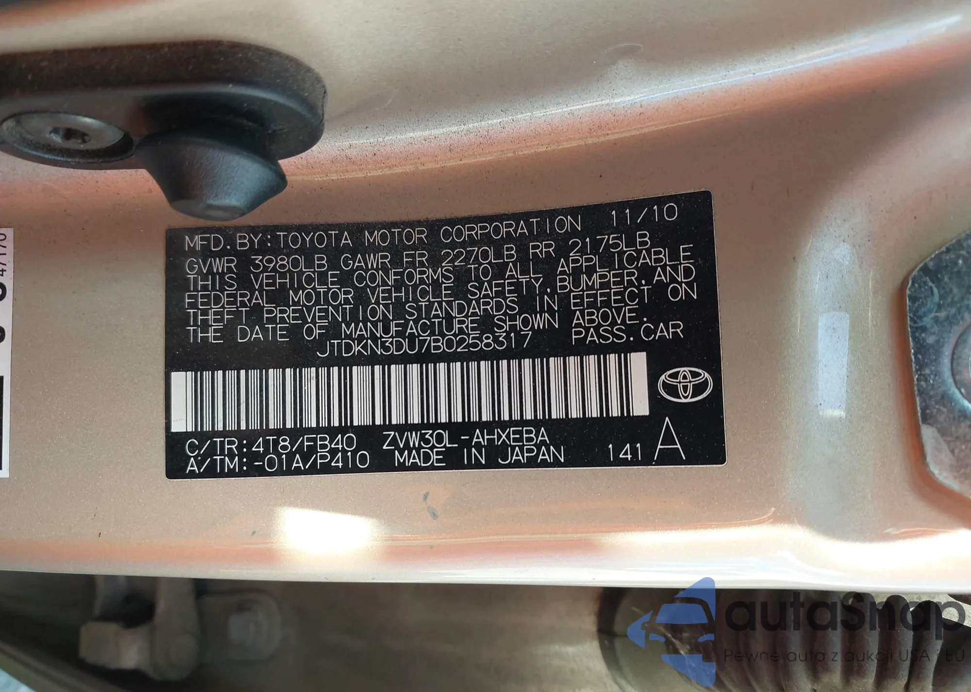 VIN: JTDKN3DU7B0258317
