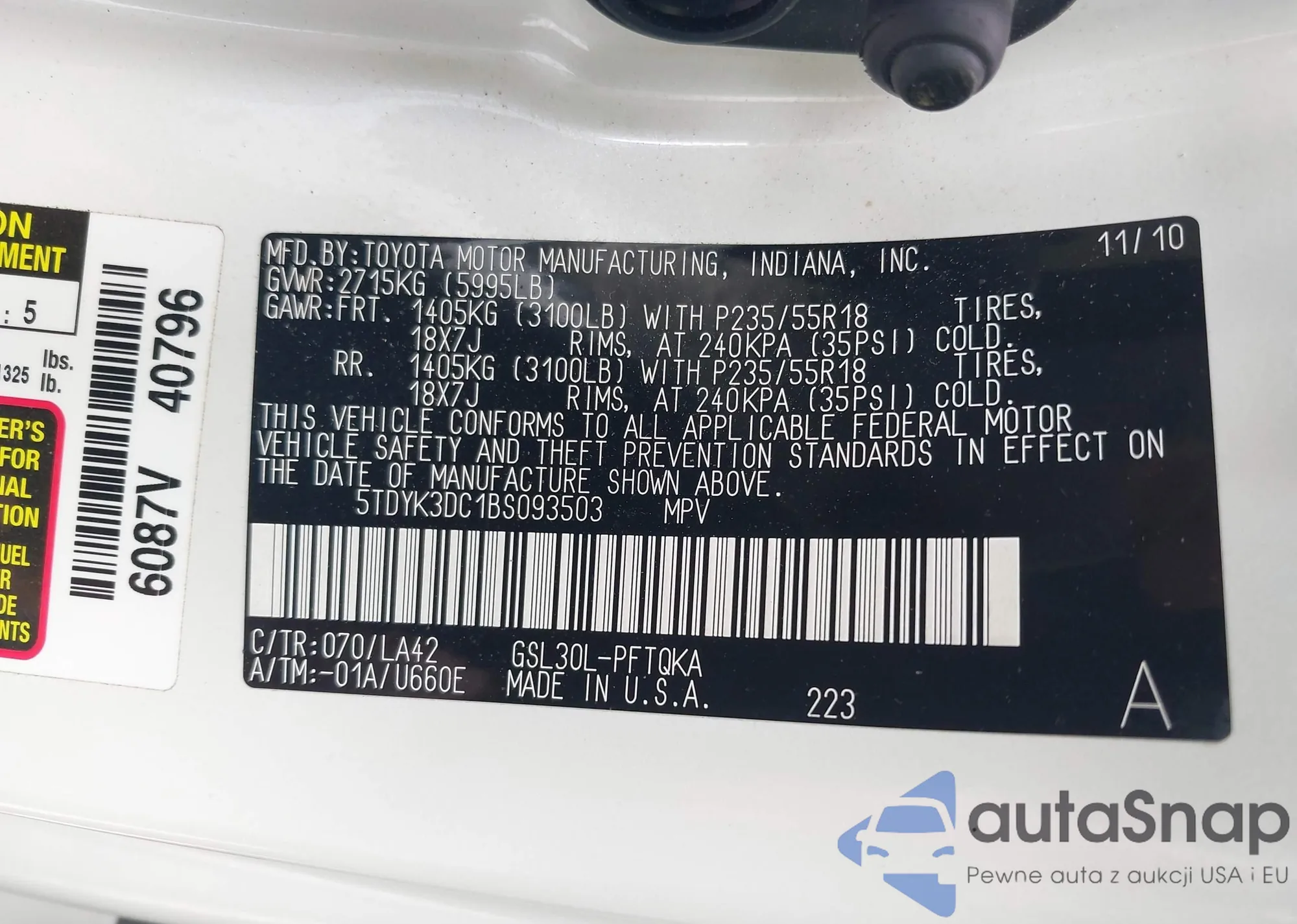 VIN: 5TDYK3DC1BS093503