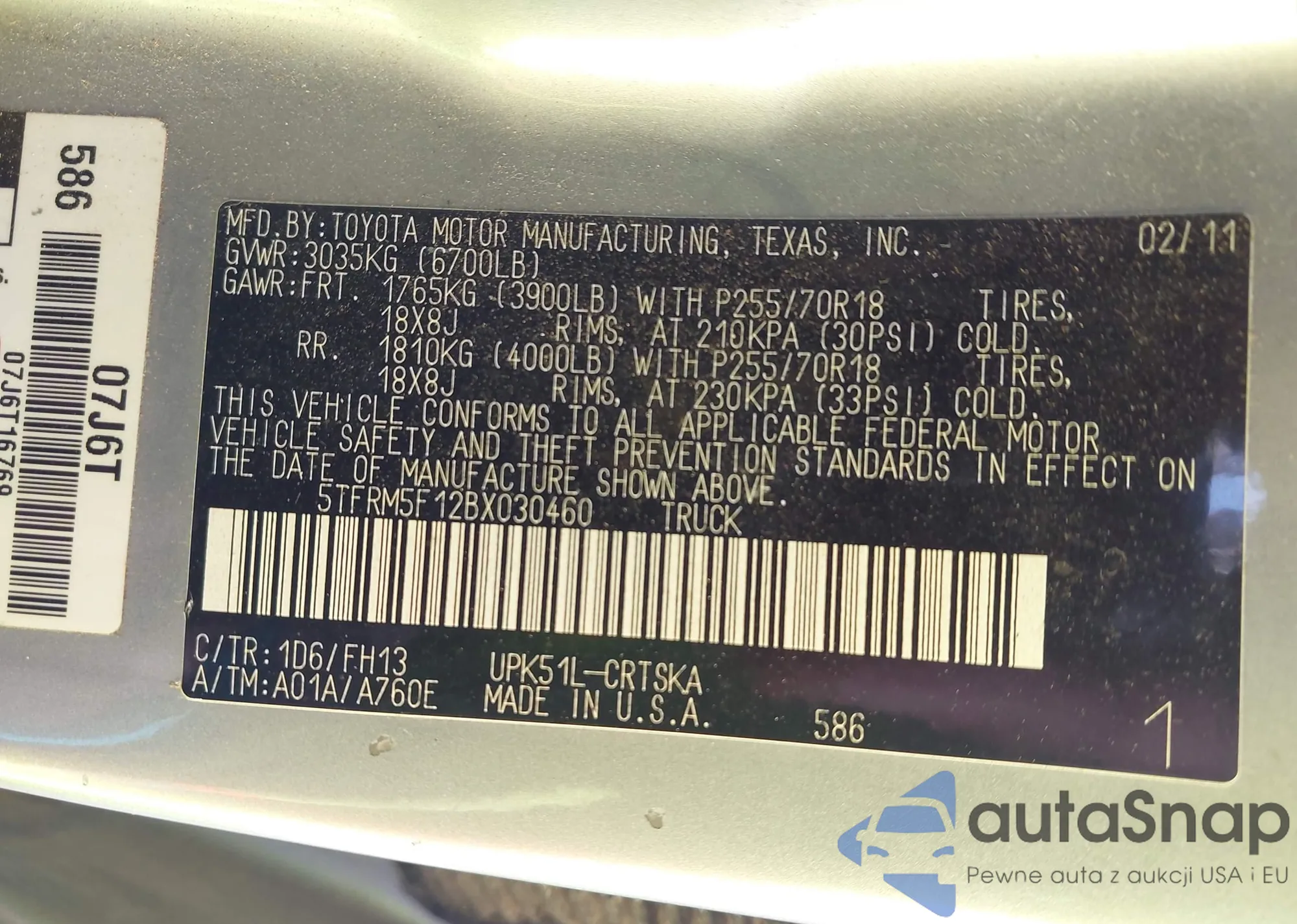 VIN: 5TFRM5F12BX030460