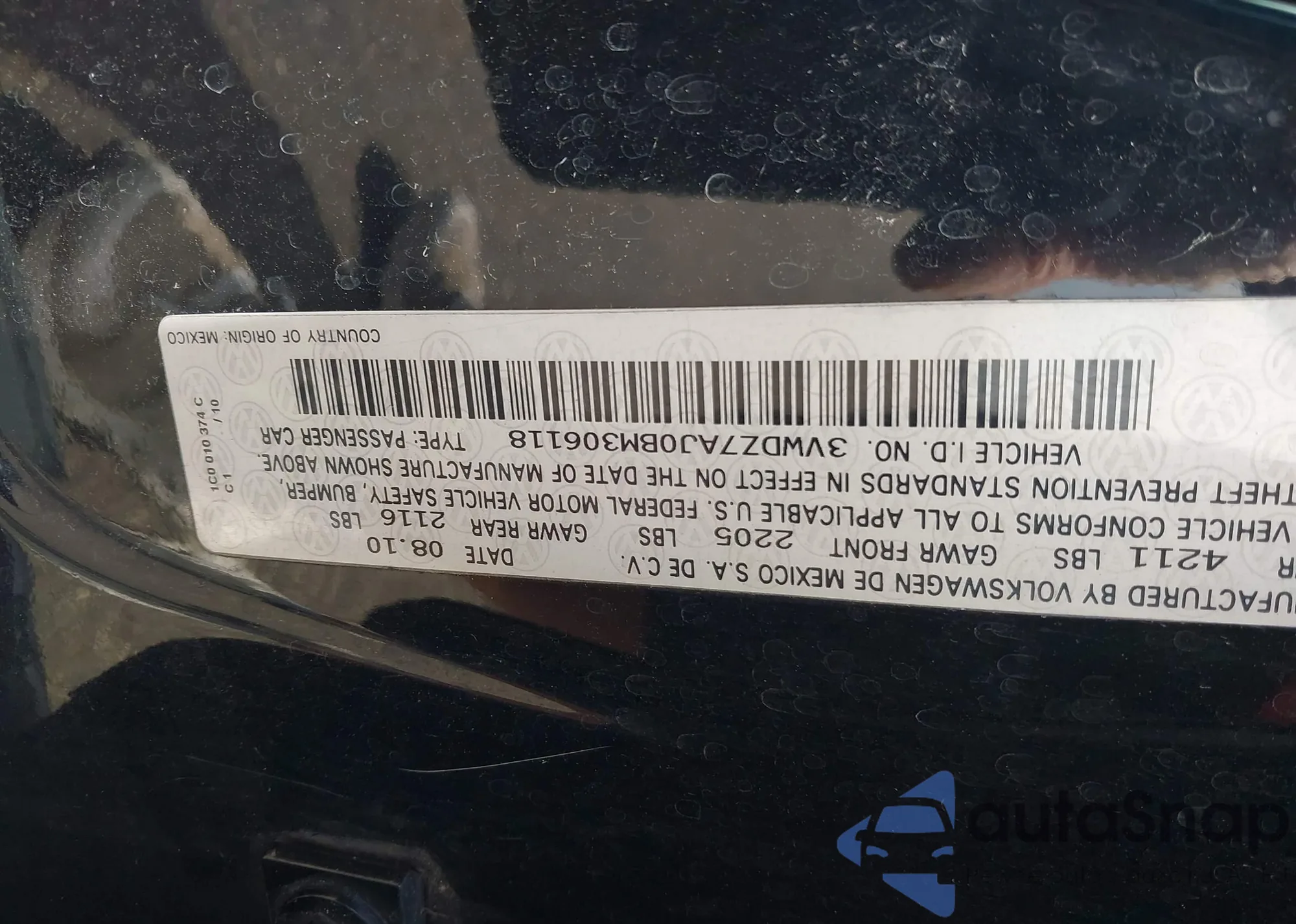VIN: 3VWDZ7AJ0BM306118
