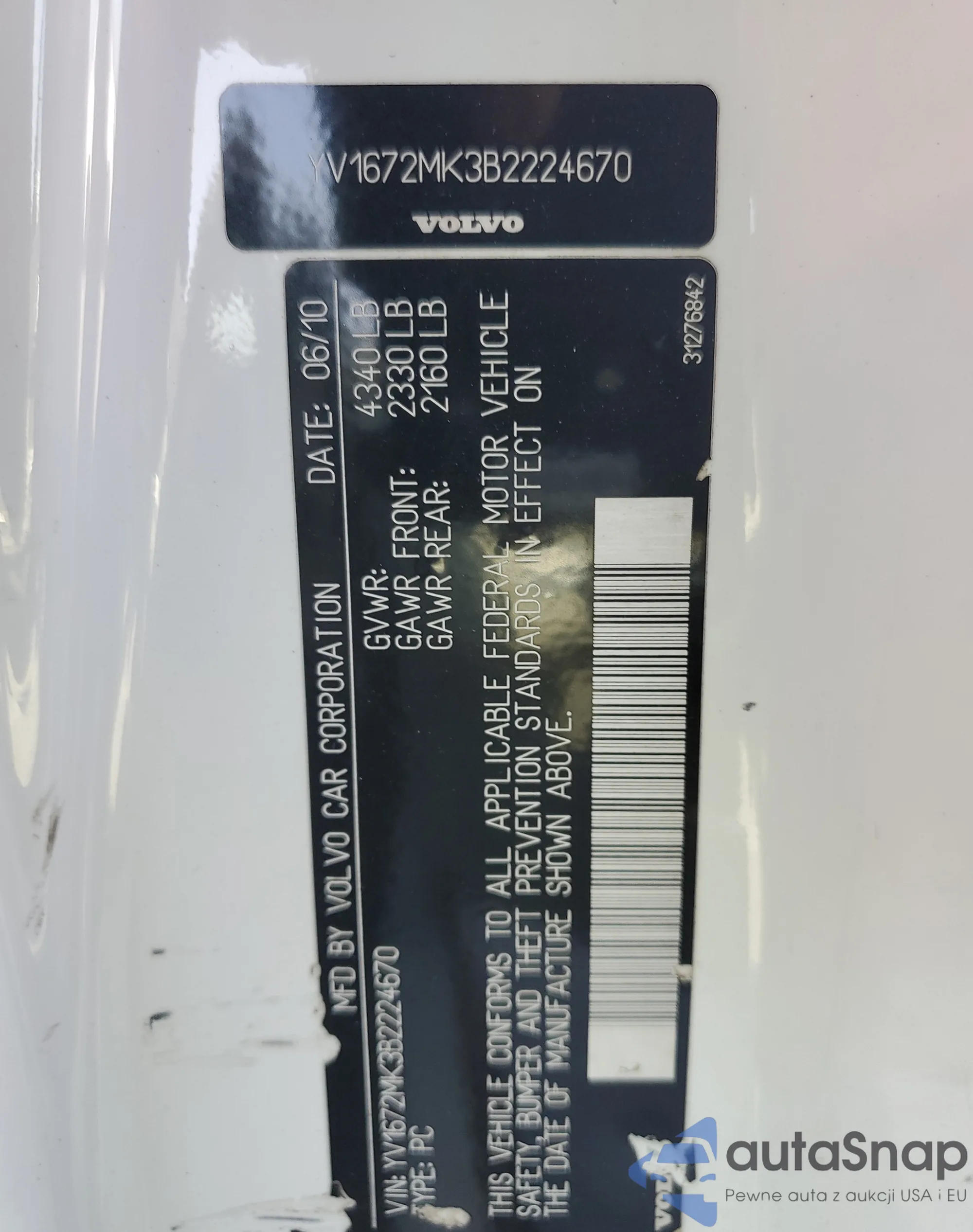 VIN: YV1672MK3B2224670