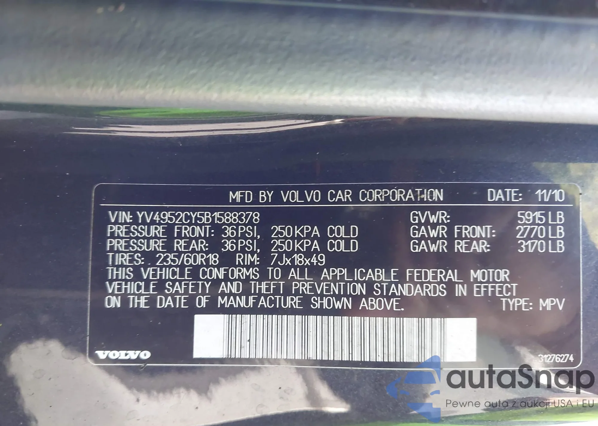 VIN: YV4952CY5B1588378