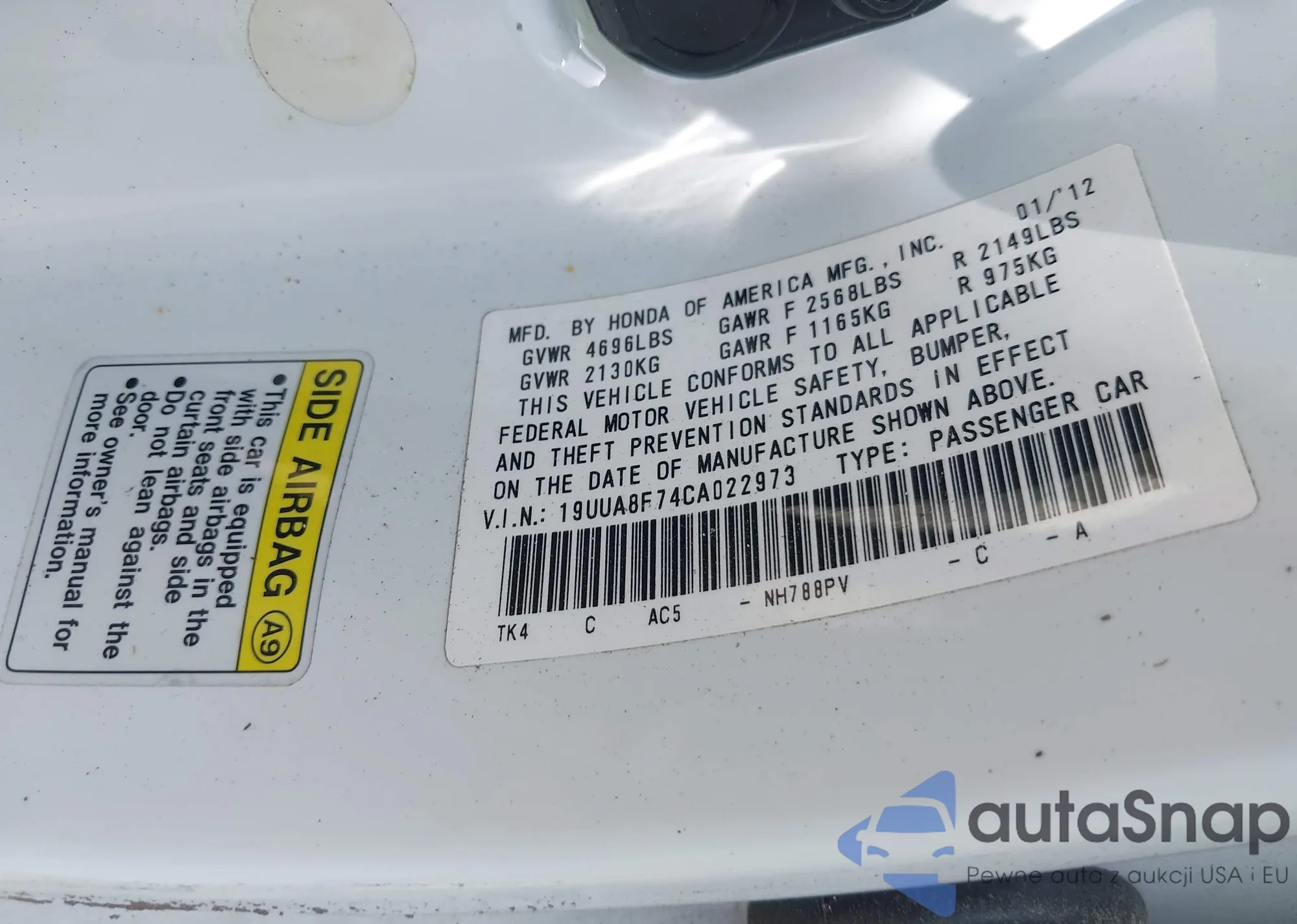 VIN: 19UUA8F74CA022973