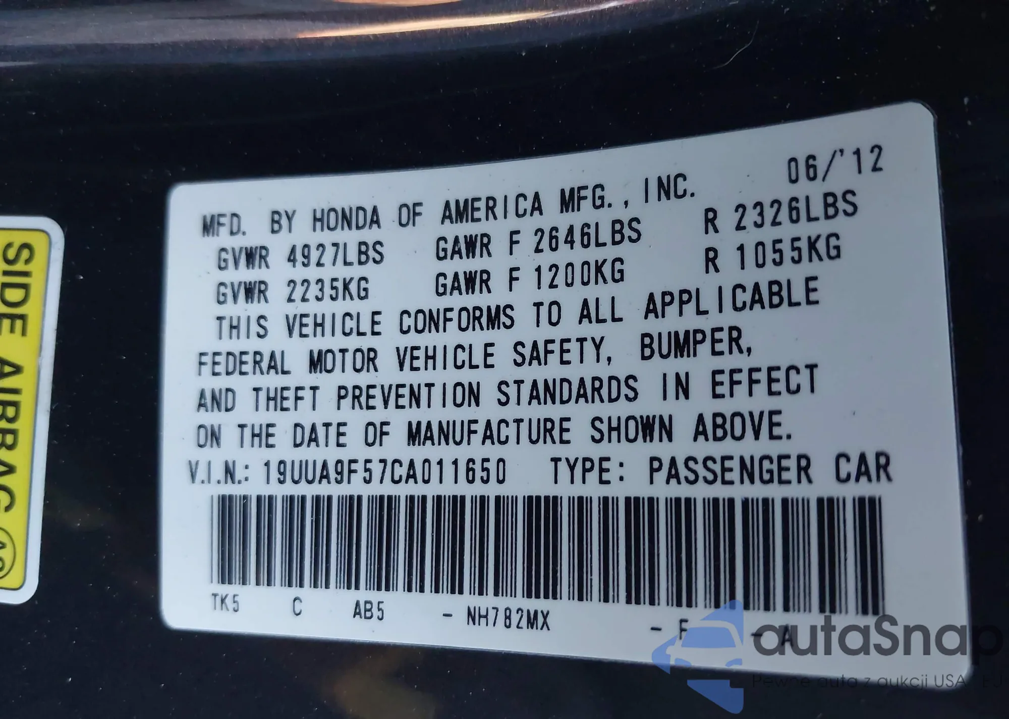 VIN: 19UUA9F57CA011650