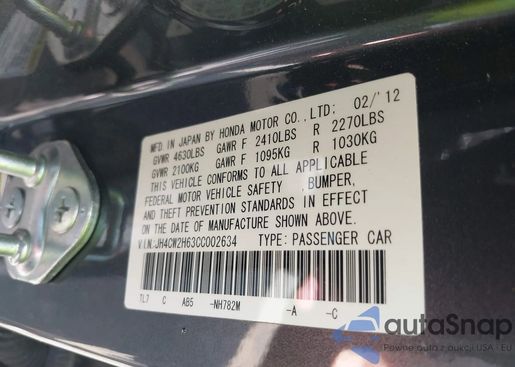 VIN: JH4CW2H63CC002634