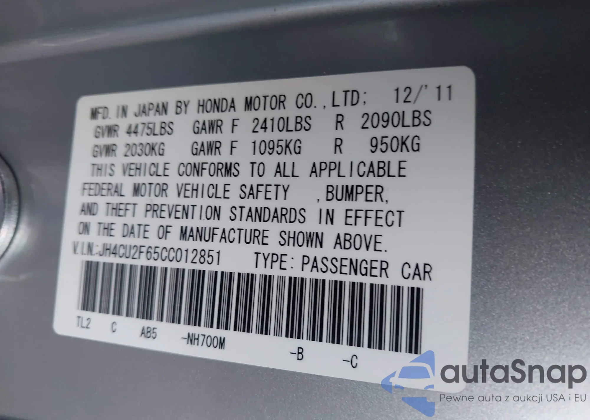 VIN: JH4CU2F65CC012851