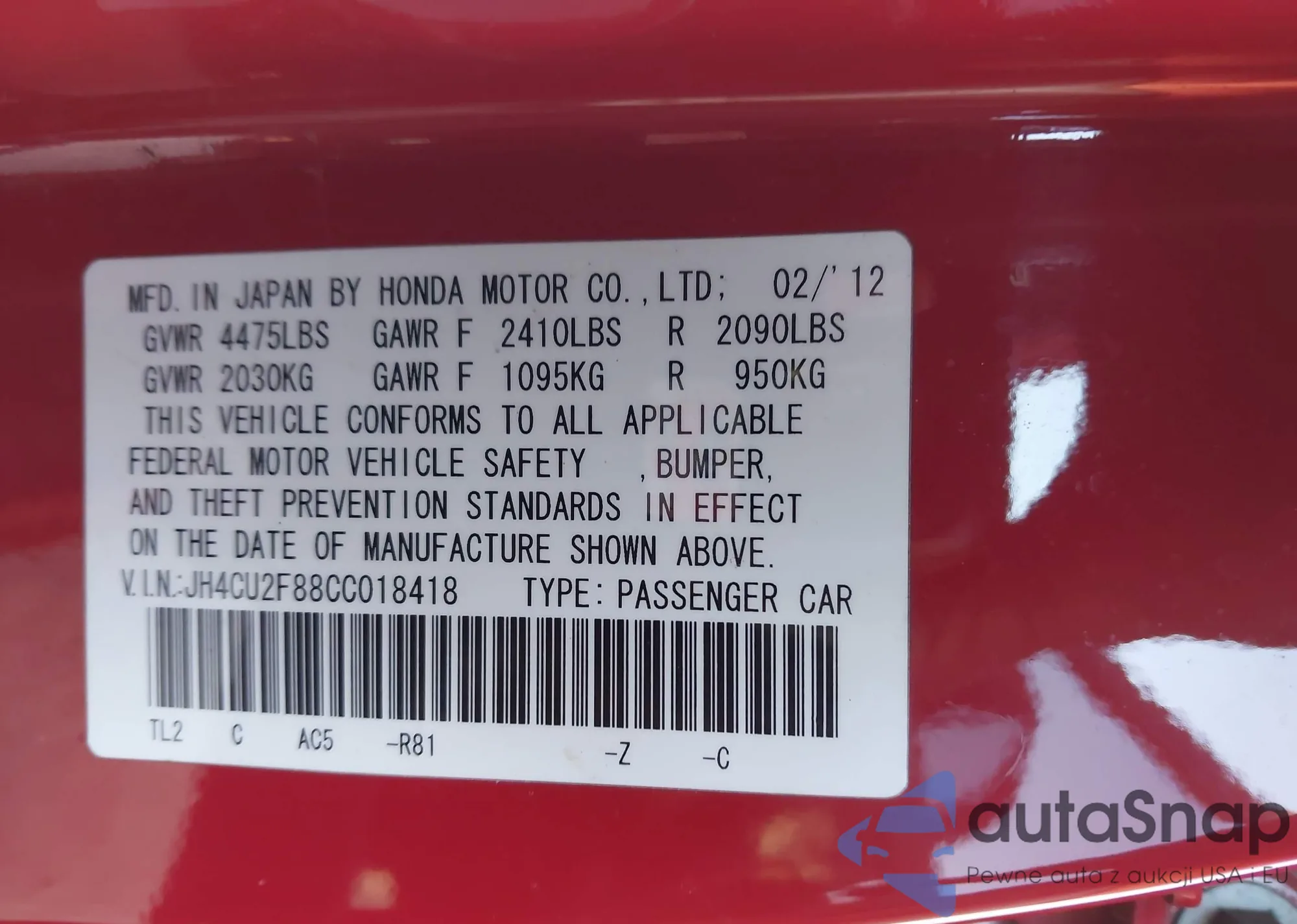 • VIN: JH4CU2F88CC018418