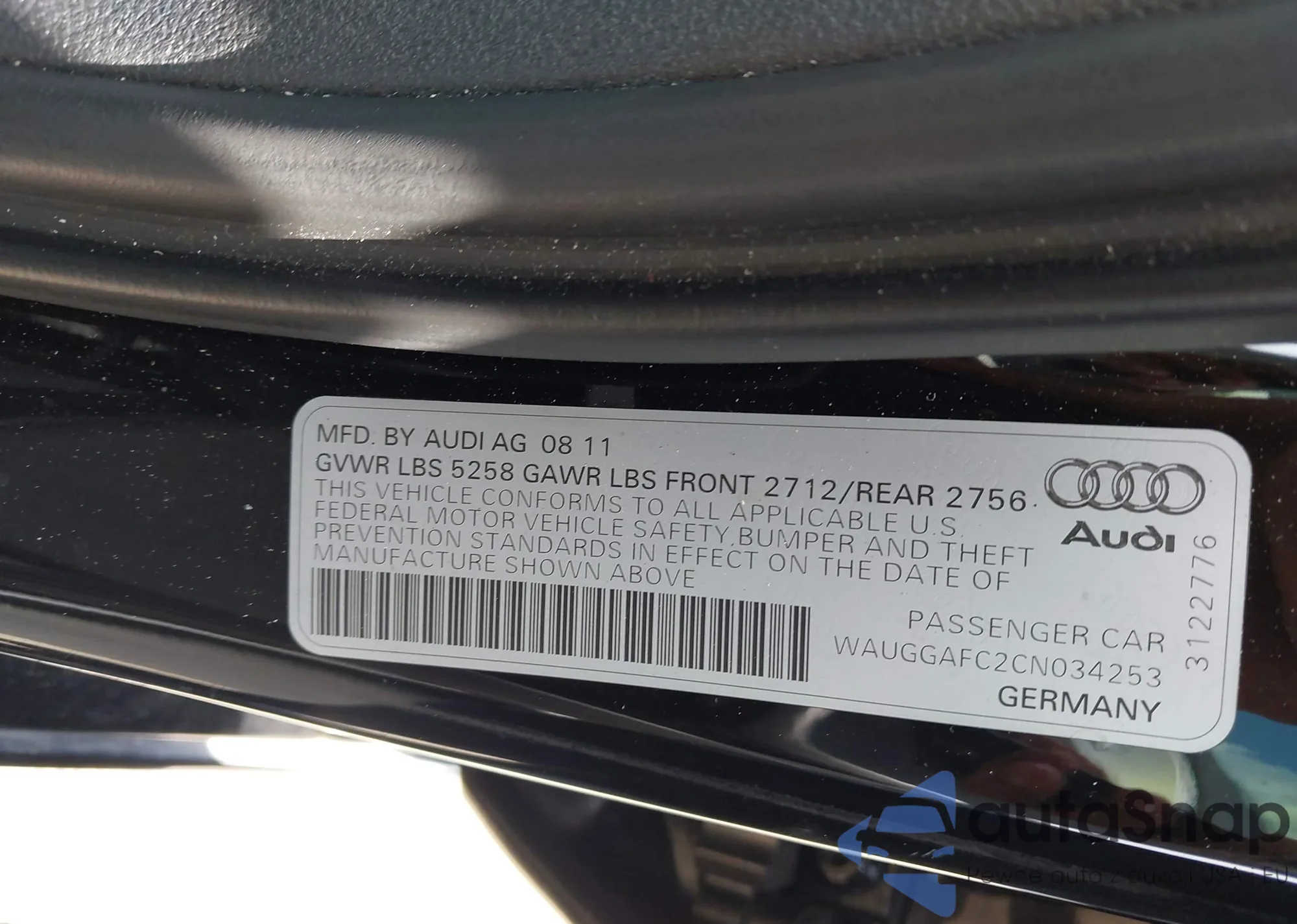 • VIN: WAUGGAFC2CN034253