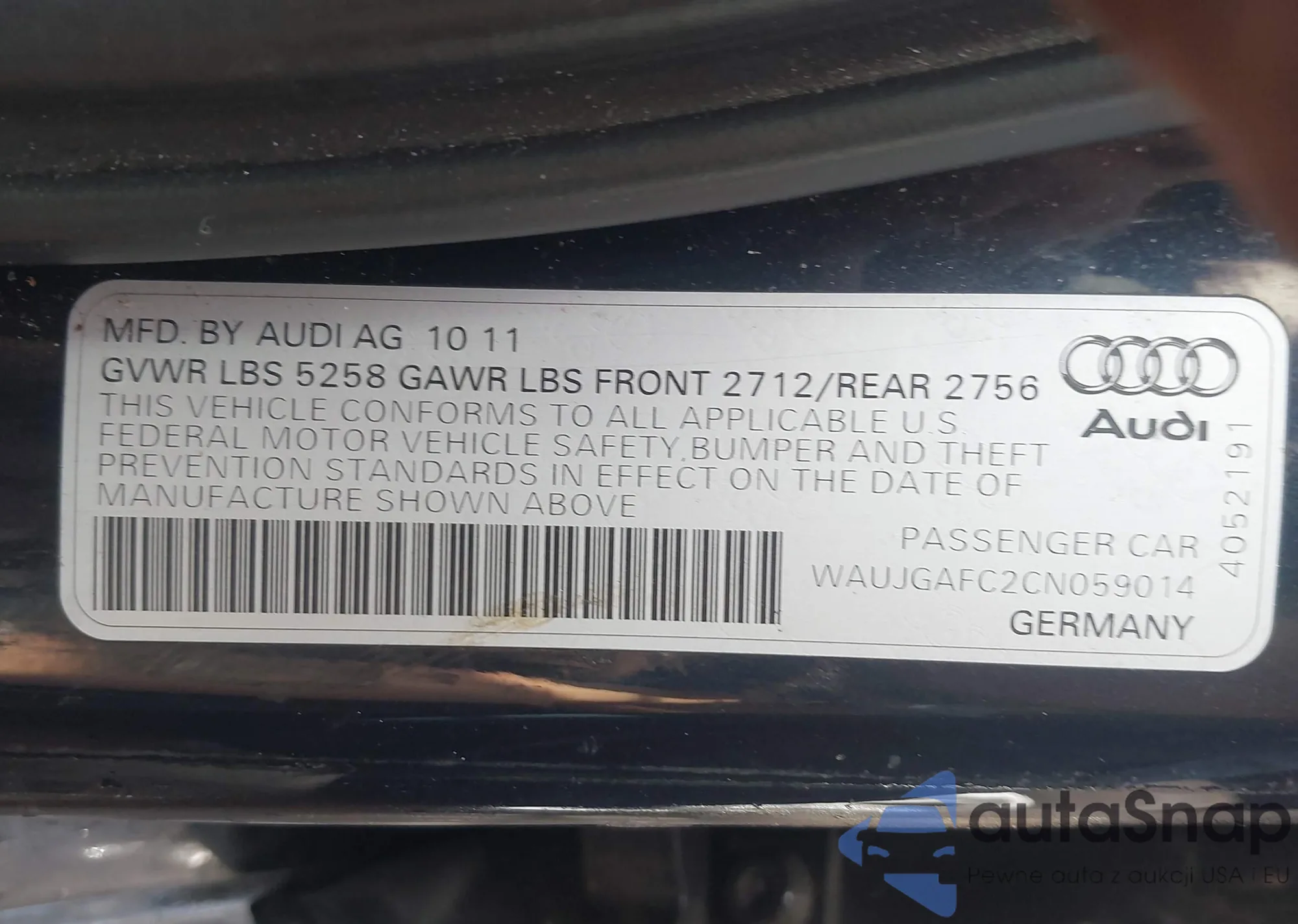 • VIN: WAUJGAFC2CN059014