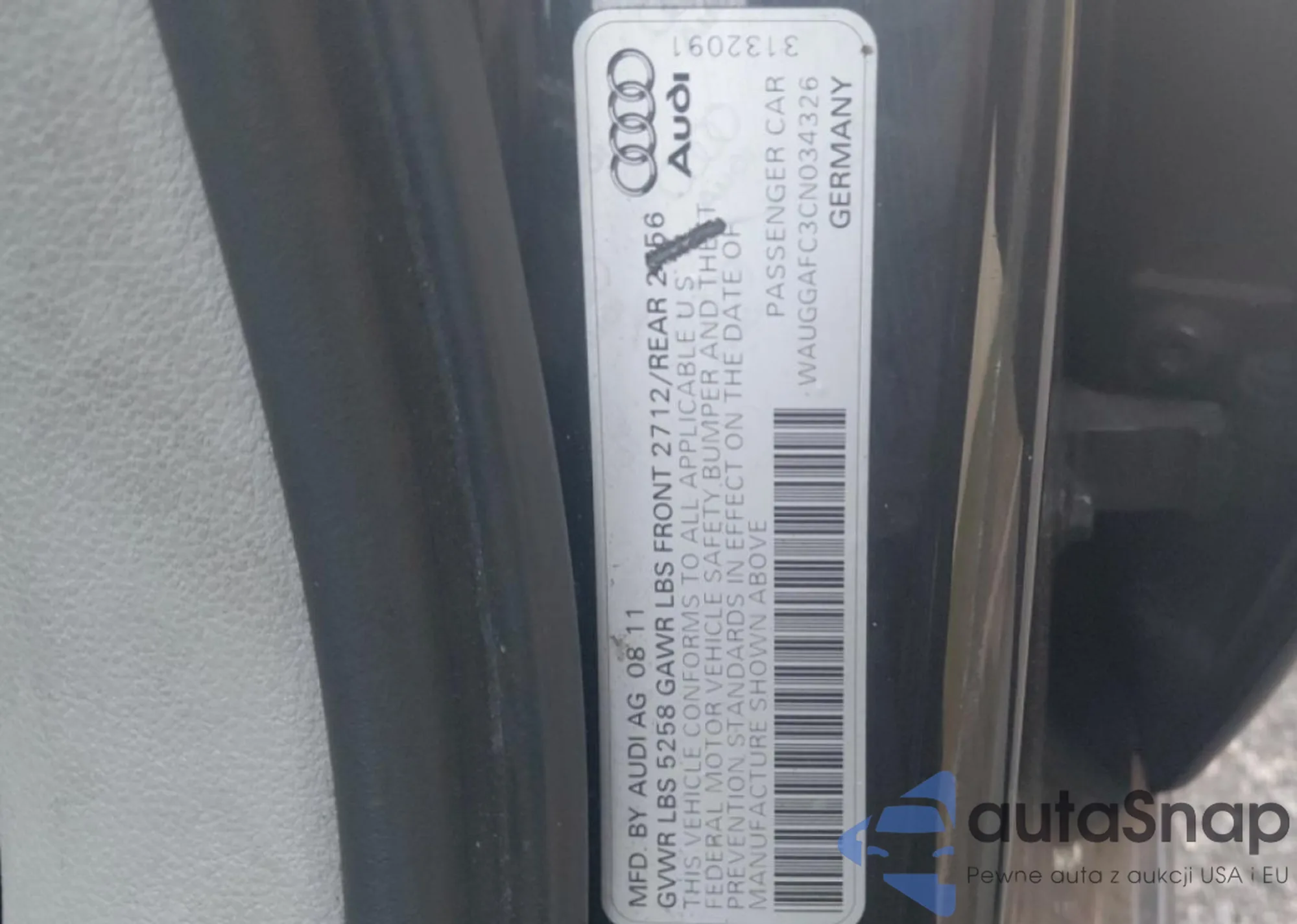 VIN: WAUGGAFC3CN034326
