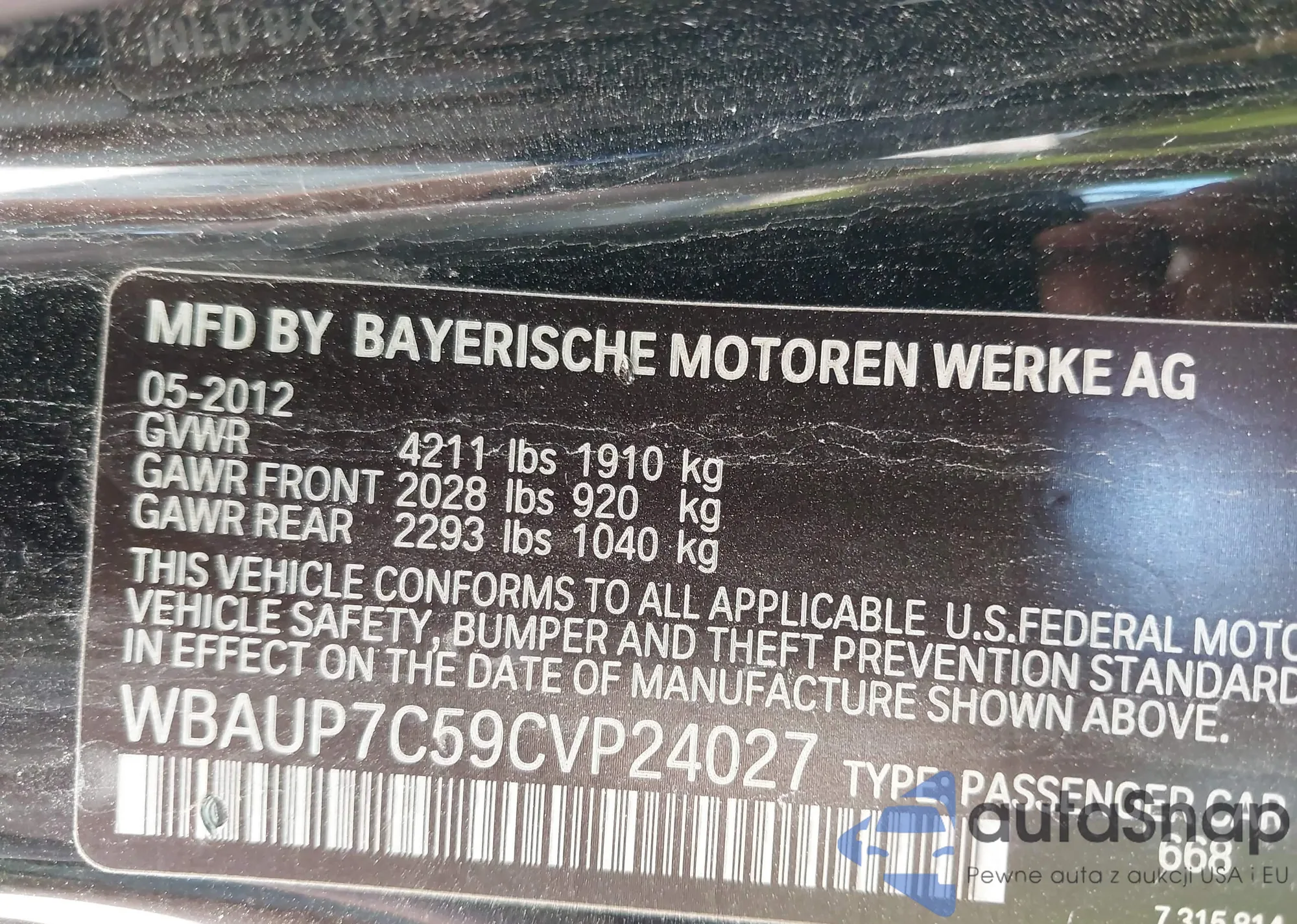 VIN: WBAUP7C59CVP24027