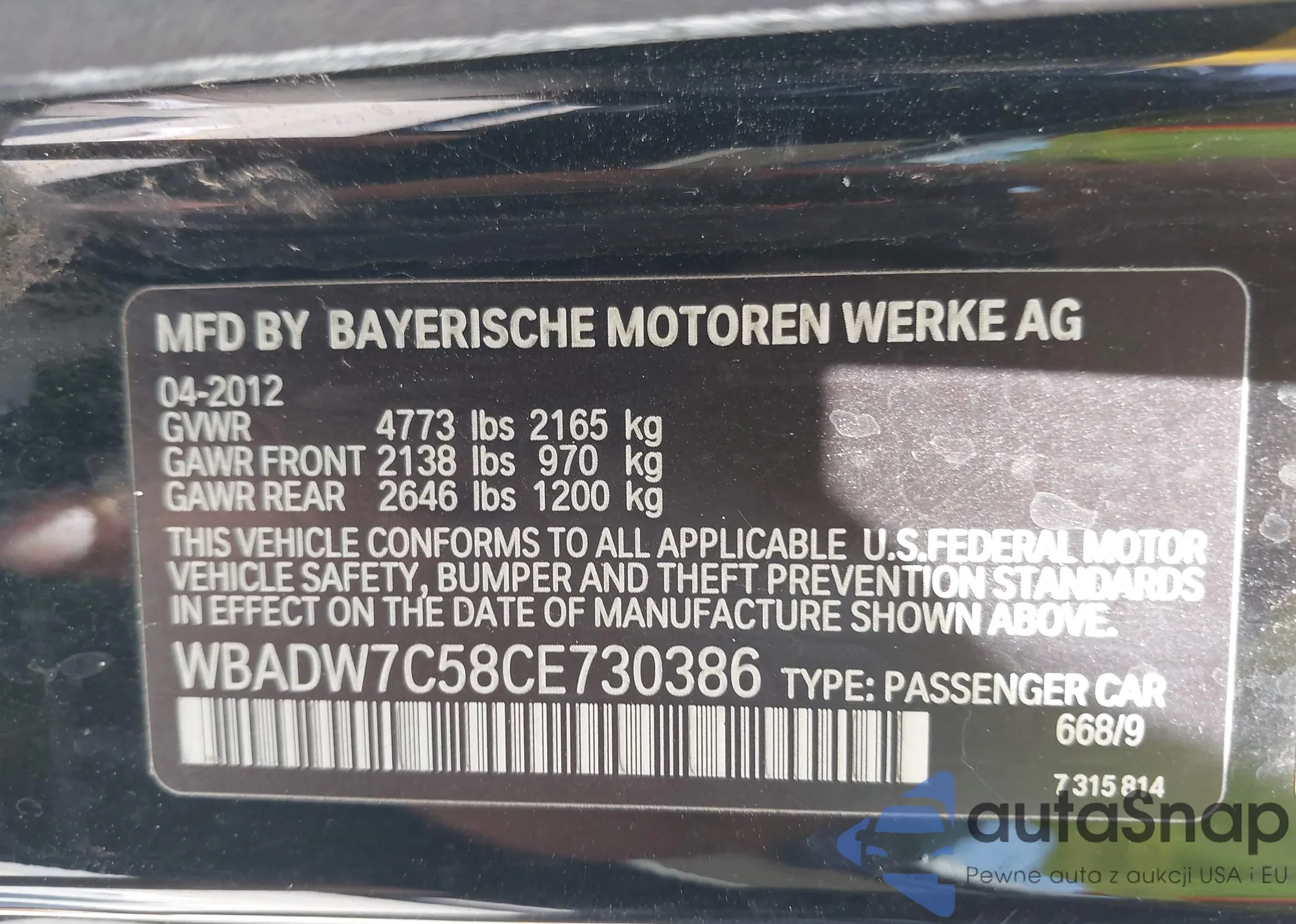 VIN: WBADW7C58CE730386