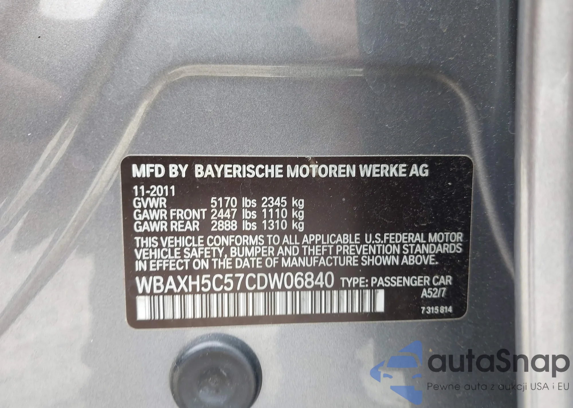 VIN: WBAXH5C57CDW06840