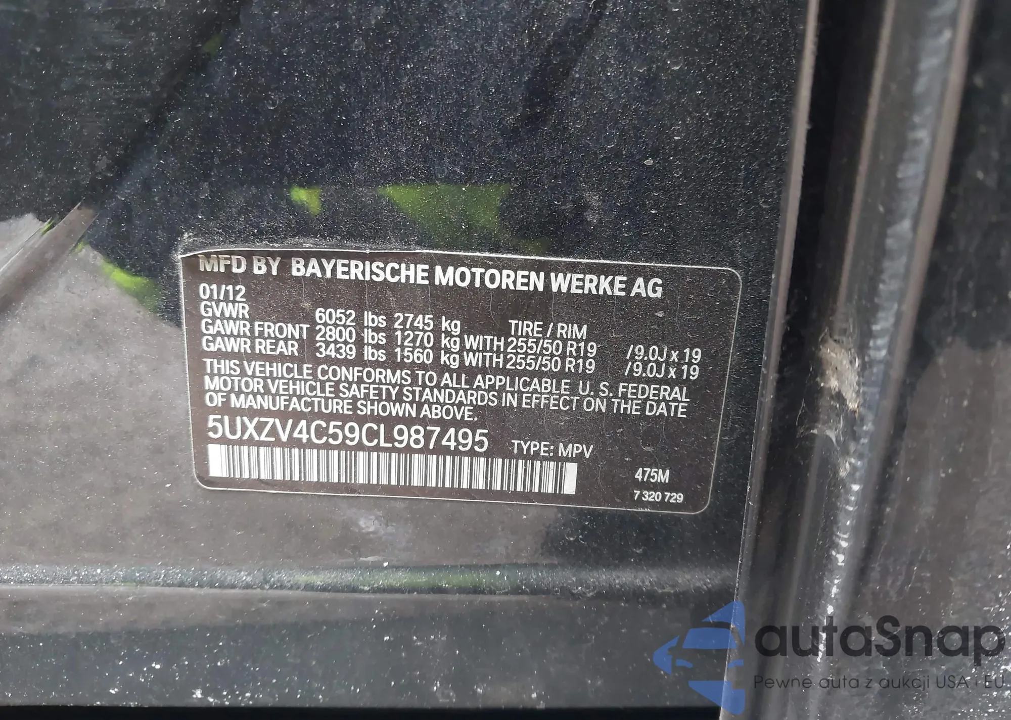 Автомобиль BMW X5 2012 (VIN 5UXZV4C59CL987495) ранее не участвовал в торгах. Документы чистые, пробег соответствует или ниже среднего по рынку. Продаётся страховой компанией — рекомендуем покупку. Доставка в порт займет около 6–8 недель.