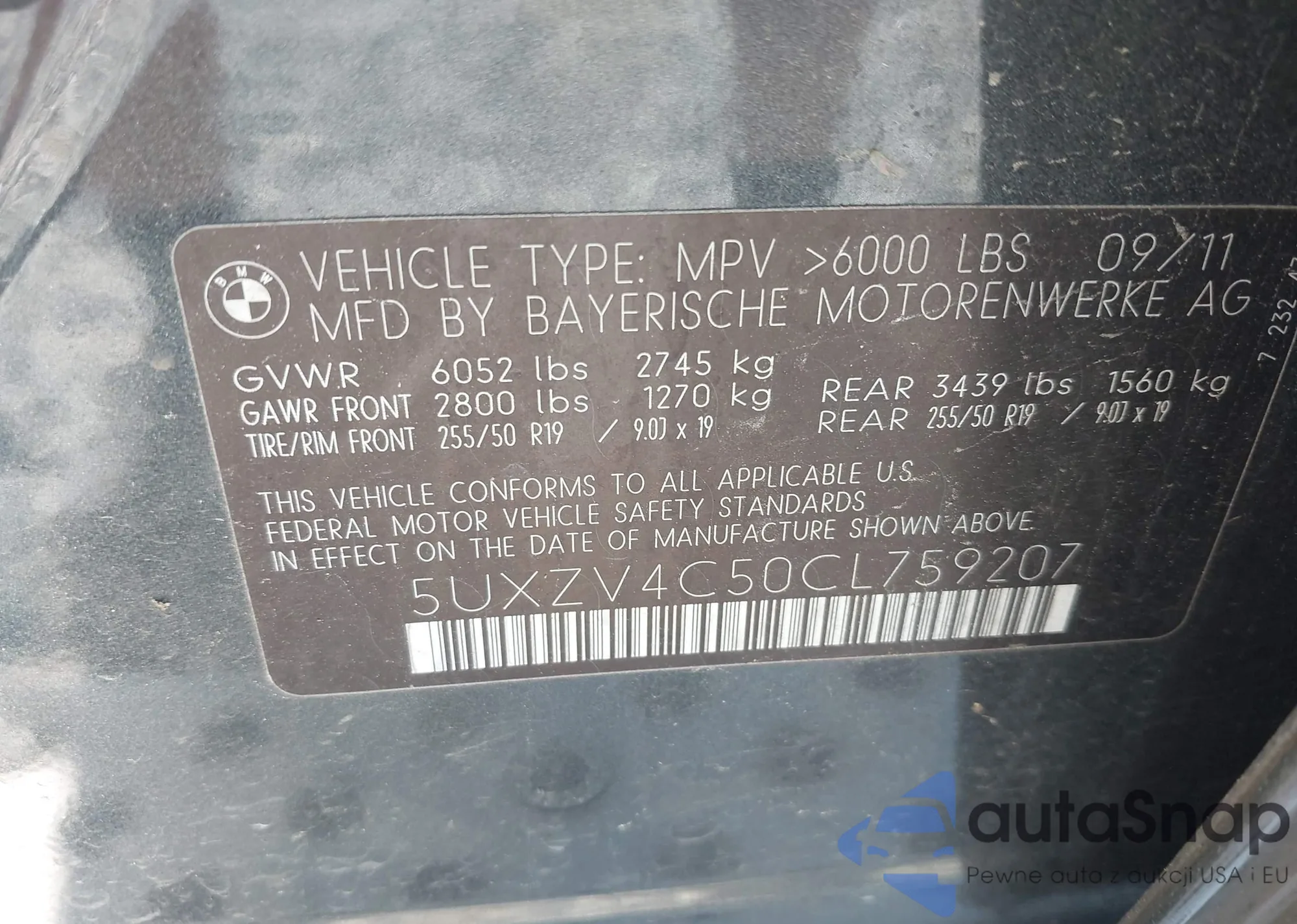 VIN: 5UXZV4C50CL759207