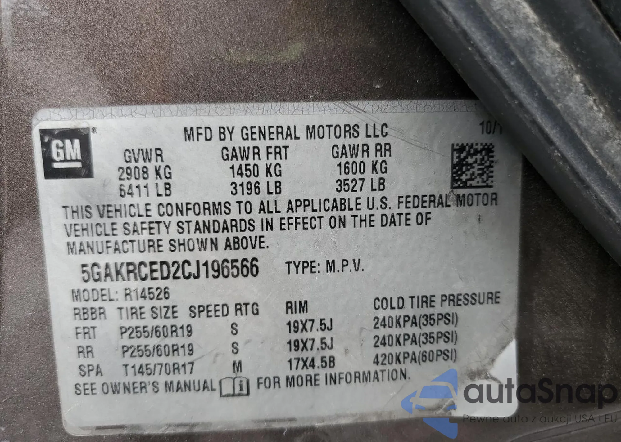 VIN: 5GAKRCED2CJ196566