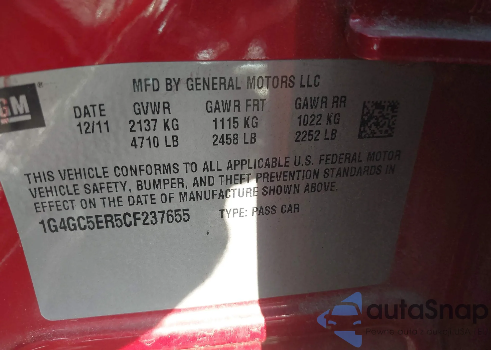 Автомобиль Buick LaCrosse 2012 (VIN 1G4GC5ER5CF237655) ранее не участвовал в торгах. Документы чистые, пробег соответствует или ниже среднего по рынку. Продаётся страховой компанией — рекомендуем покупку. Доставка в порт займет около 6–8 недель.