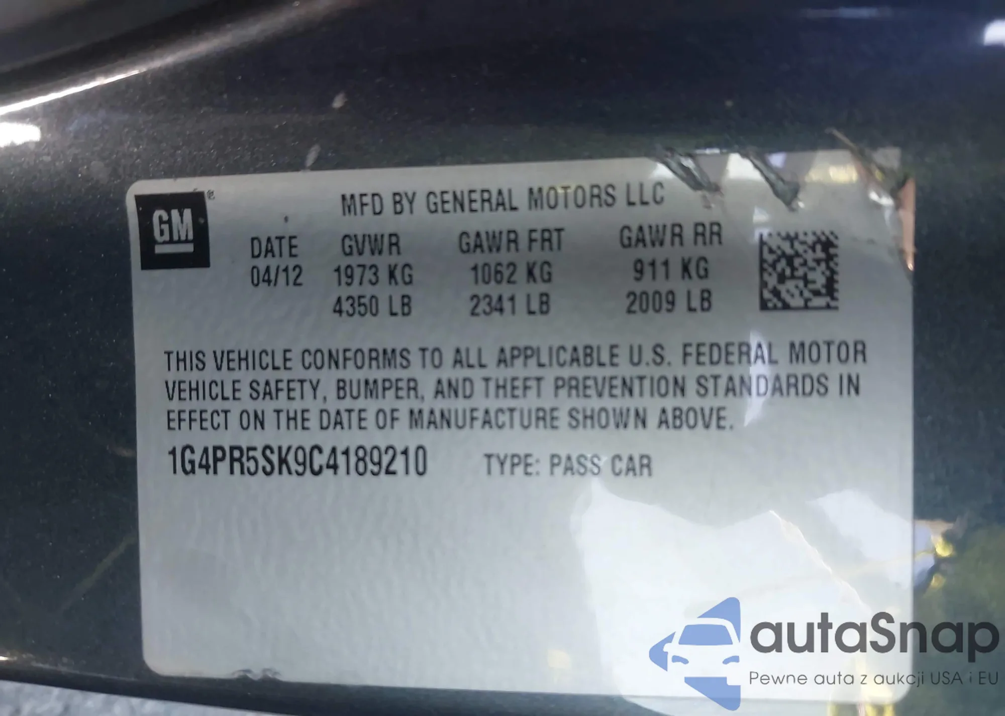 VIN: 1G4PR5SK9C4189210