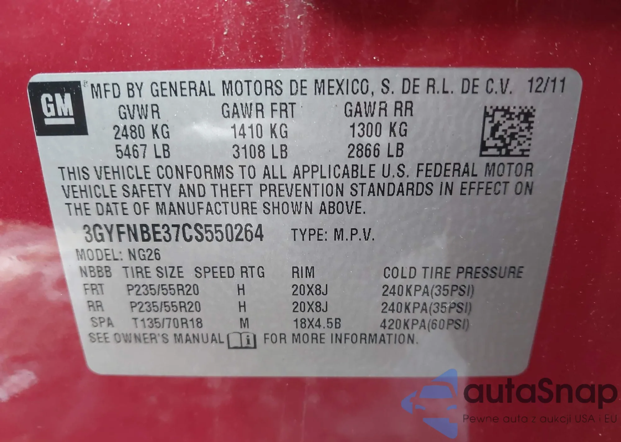 Автомобиль Cadillac SRX 2012 (VIN 3GYFNBE37CS550264) ранее не участвовал в торгах. Документы чистые, пробег соответствует или ниже среднего по рынку. Продаётся страховой компанией — рекомендуем покупку. Доставка в порт займет около 6–8 недель.