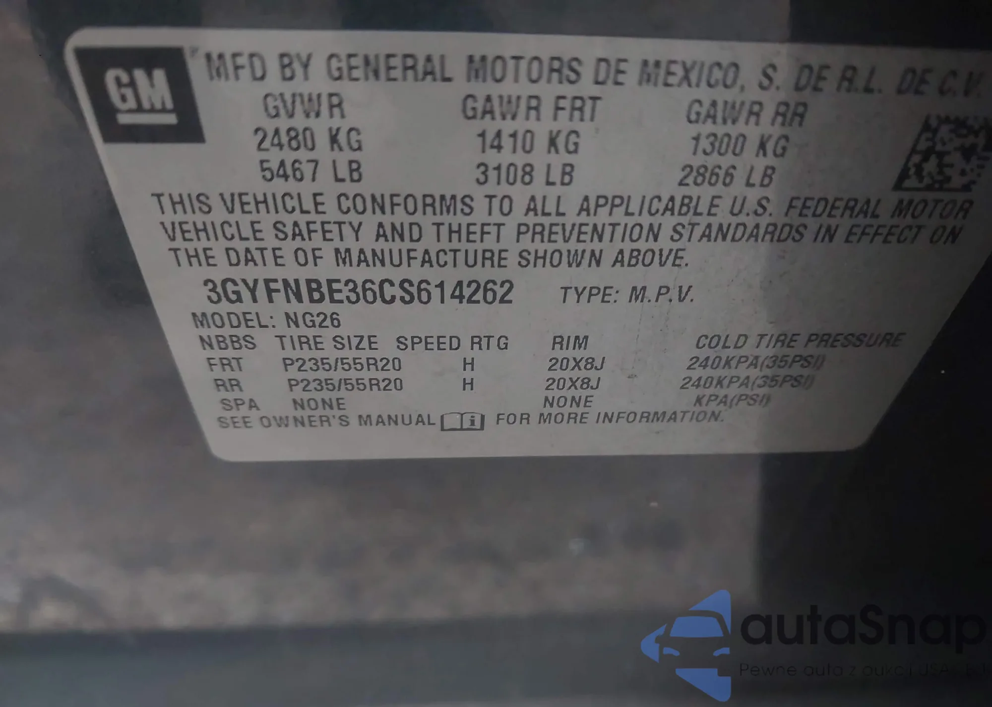 VIN: 3GYFNBE36CS614262