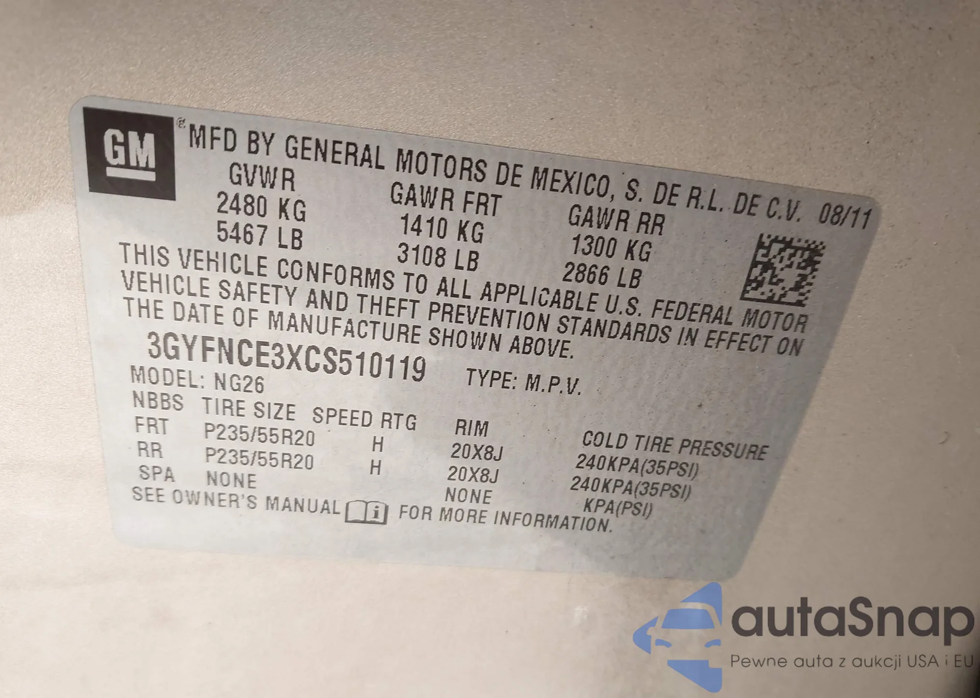 VIN: 3GYFNCE3XCS510119